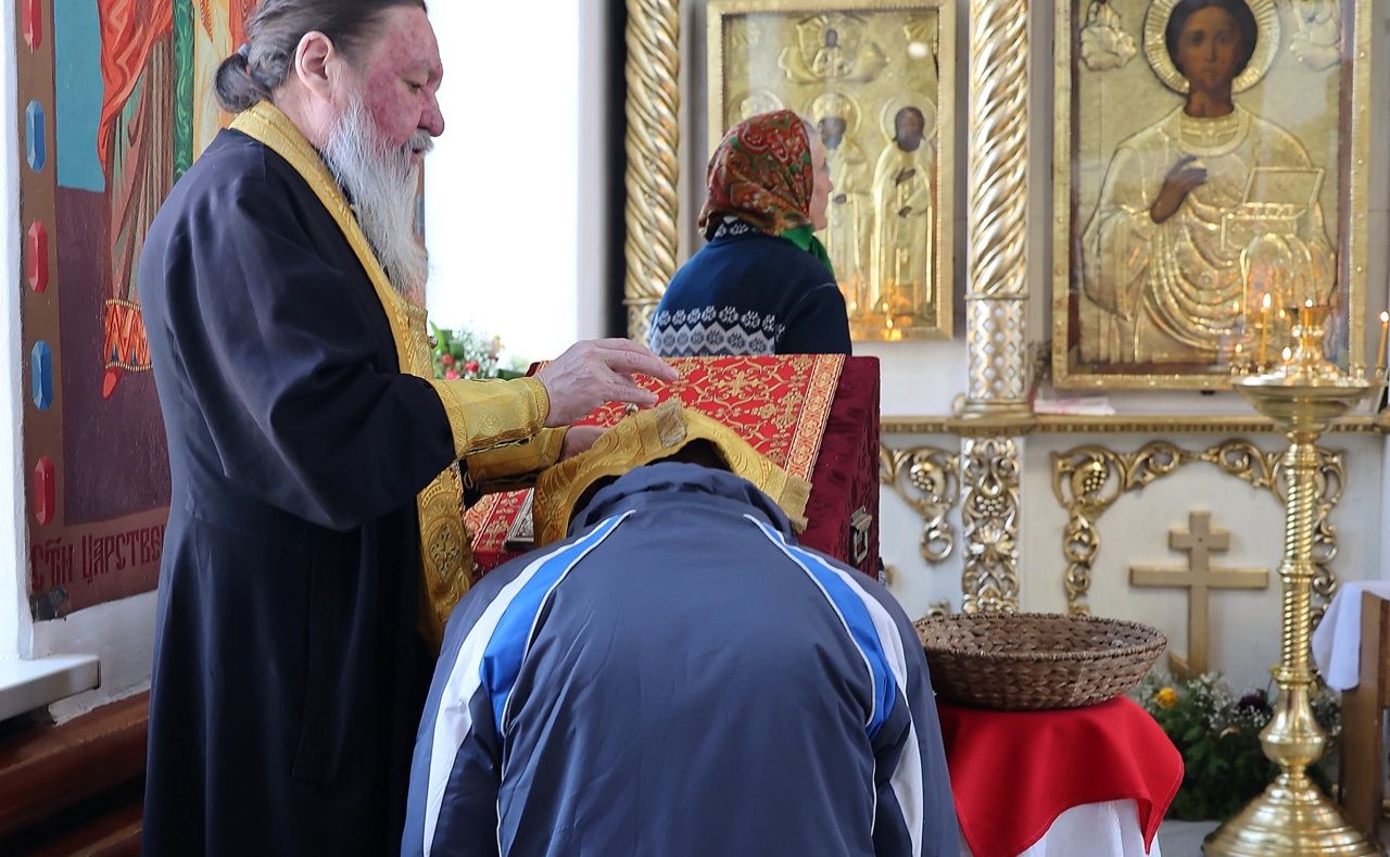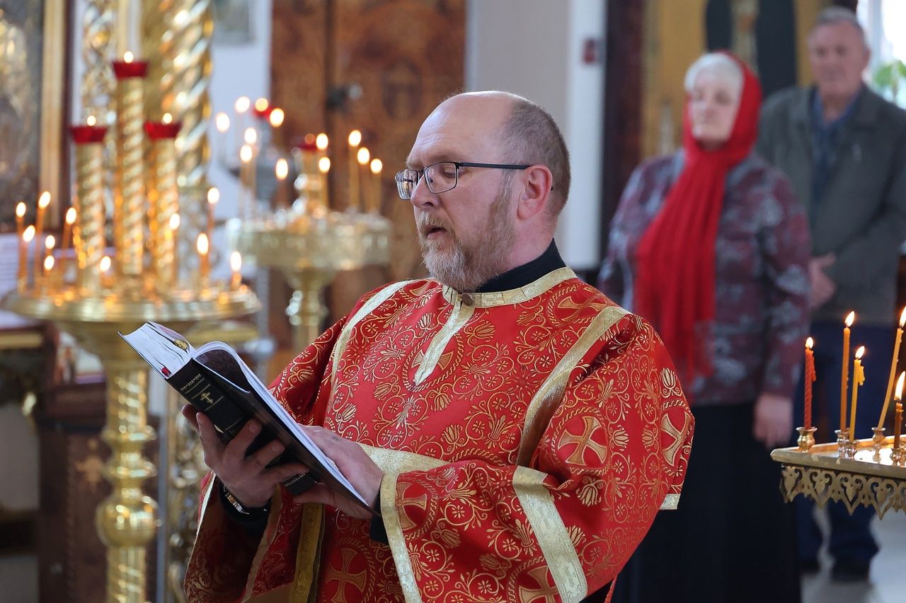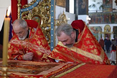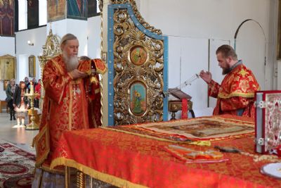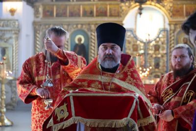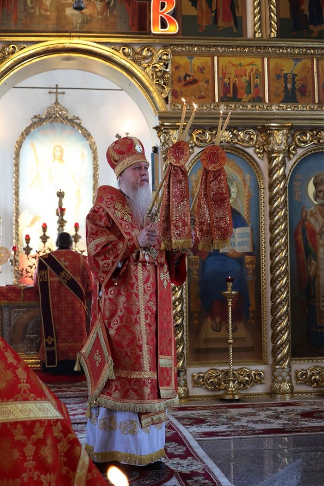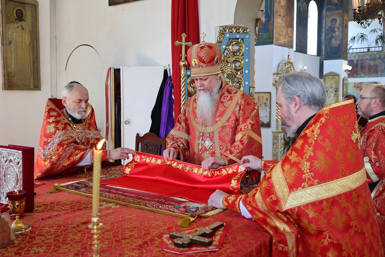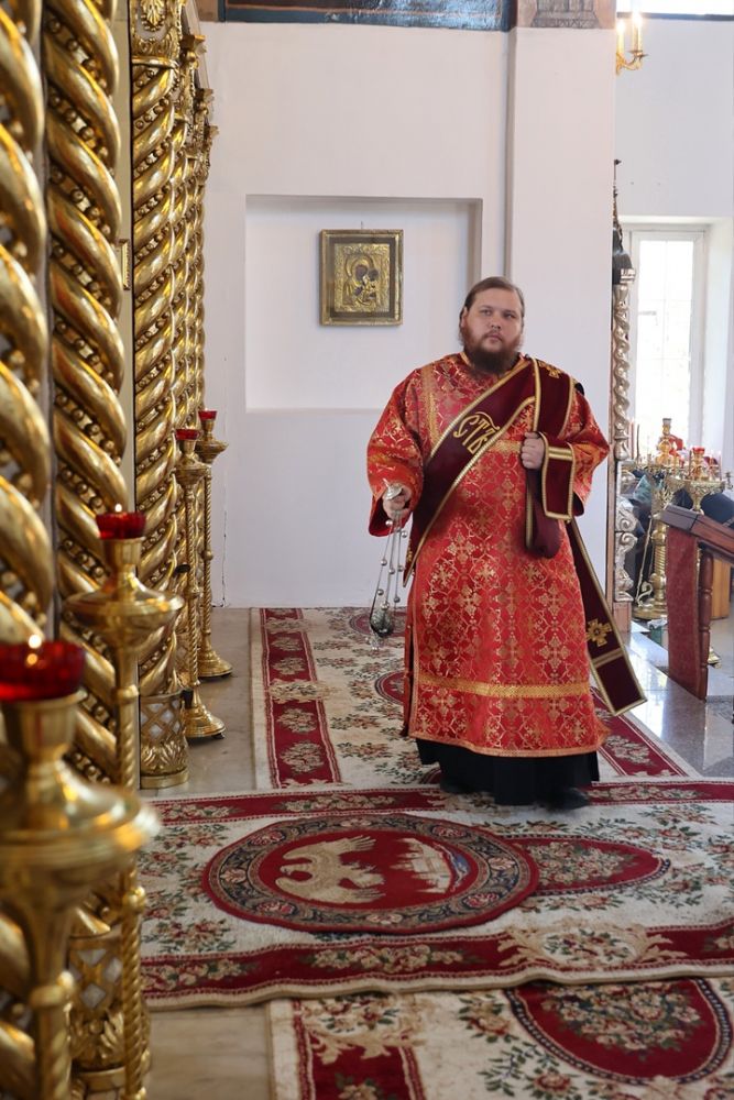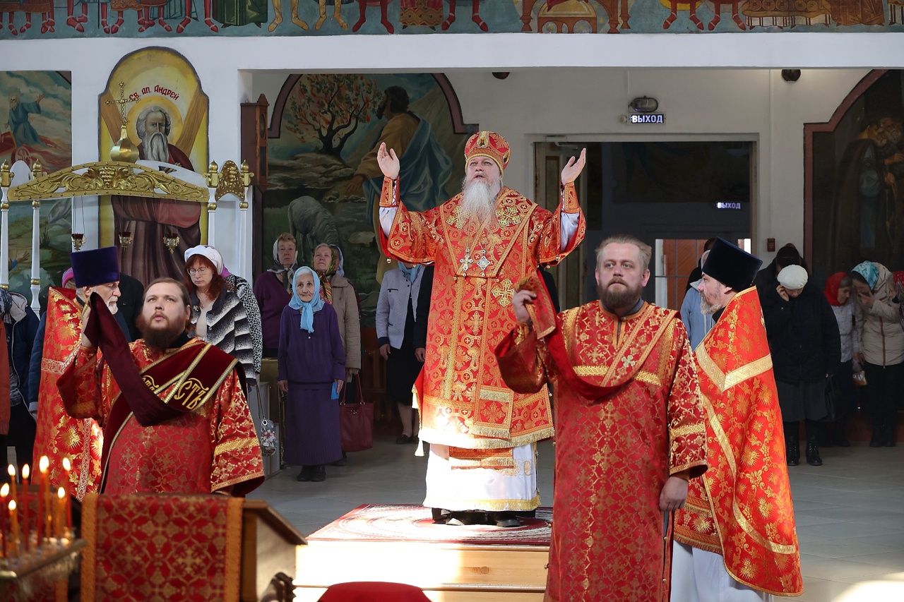 Его Преосвященству сослужили: секретарь епархиального управления иерей Иоанн Лапшинский и клирики Никольского собора протоиерей Виталий Михеев, диаконы Иоанн Захаров и Димитрий Карпетченко. Песнопения исполняли архиерейский хор под управлением регента Тимофея Протасова.