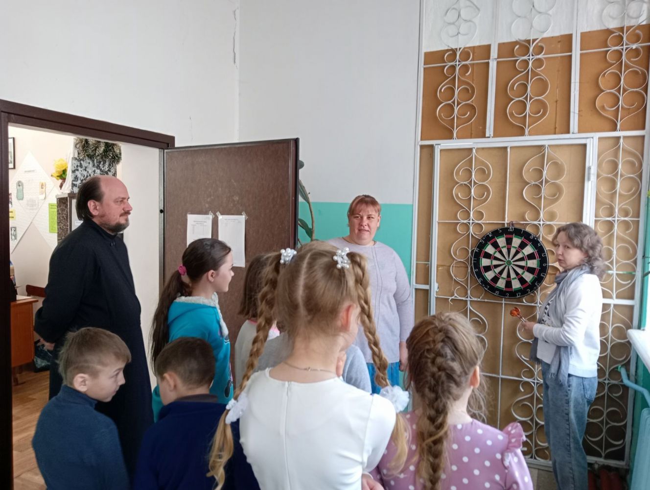 Далее все последовали в класс, где усердием родителей уже были накрыты столы. А председатель родительского комитета Надежда Панаева в очередной раз порадовала всех своими кулинарными шедеврами! Настоятель храма Всех святых в земле Российской просиявших протоиерей Николай Ярошевич поздравил собравшихся с праздником Воскресения Христова, вместе пропели молитвы, сели за стол. За чаепитием были озвучены результаты игры, и команде-победителю в качестве приза был вручен большой кулек конфет, которые ребята тут же раздали всем присутствующим. Пасхальный праздник удался!