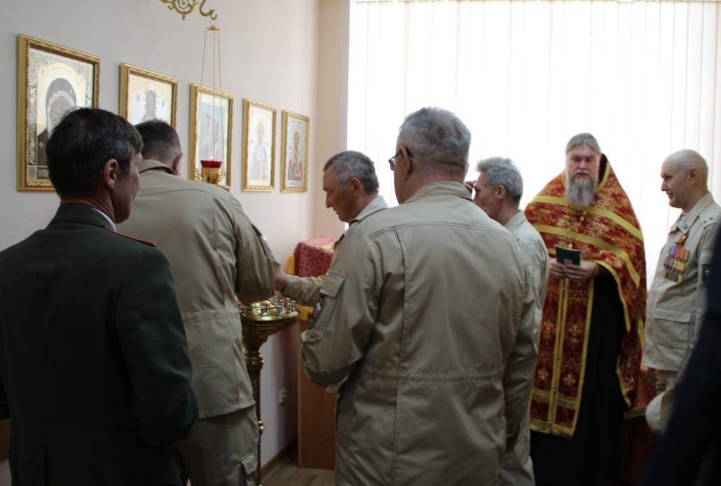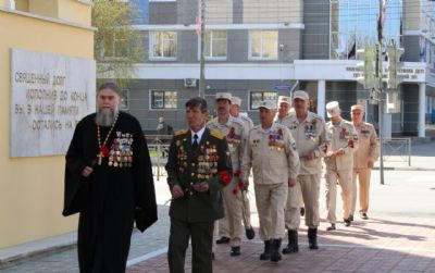 После митинг, в молебной комнате во имя святого великомученика Георгия Победоносца в здании Совета ветеранов МВД по РМЭ отец Александр совершил заупокойную литию с поминовением павших на поле брани воинов.
