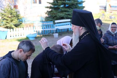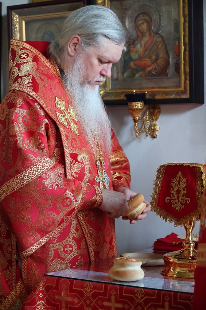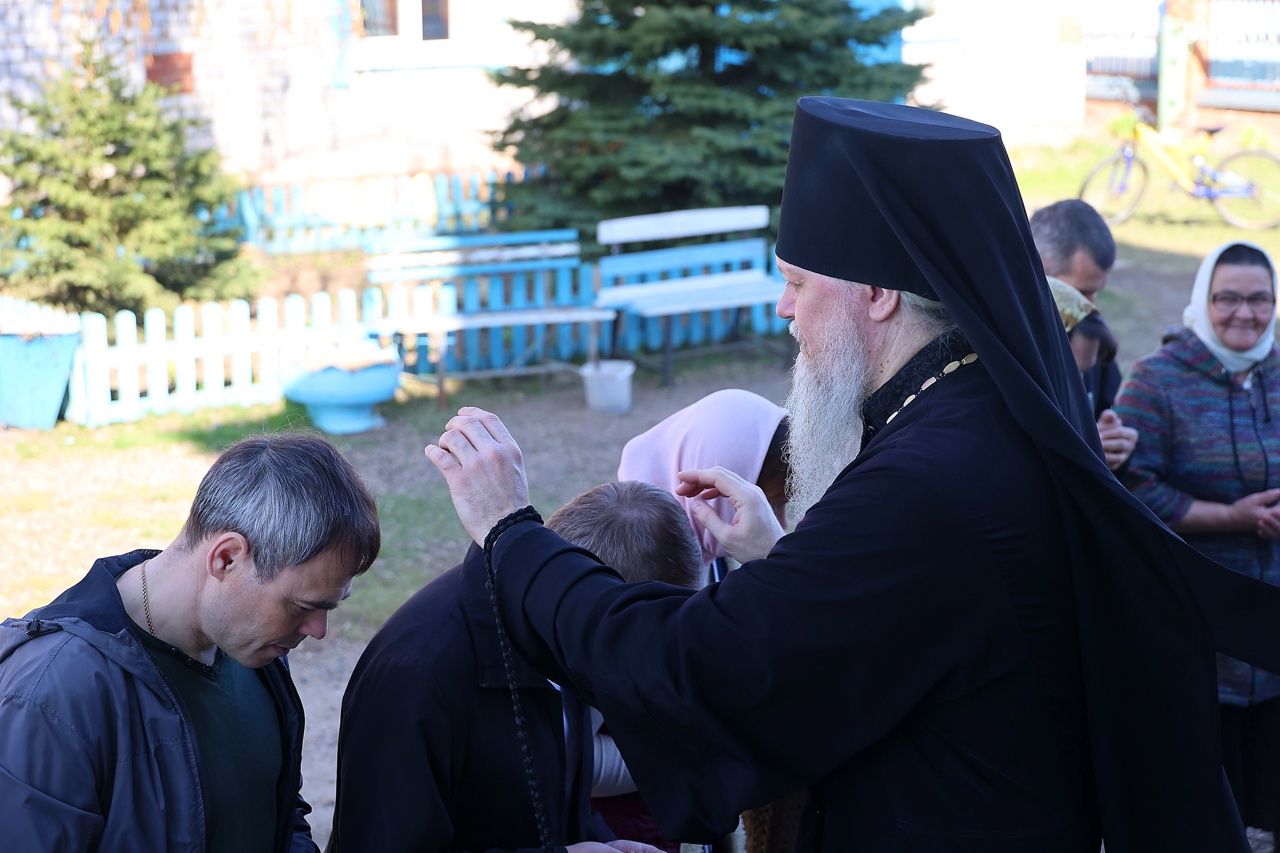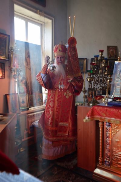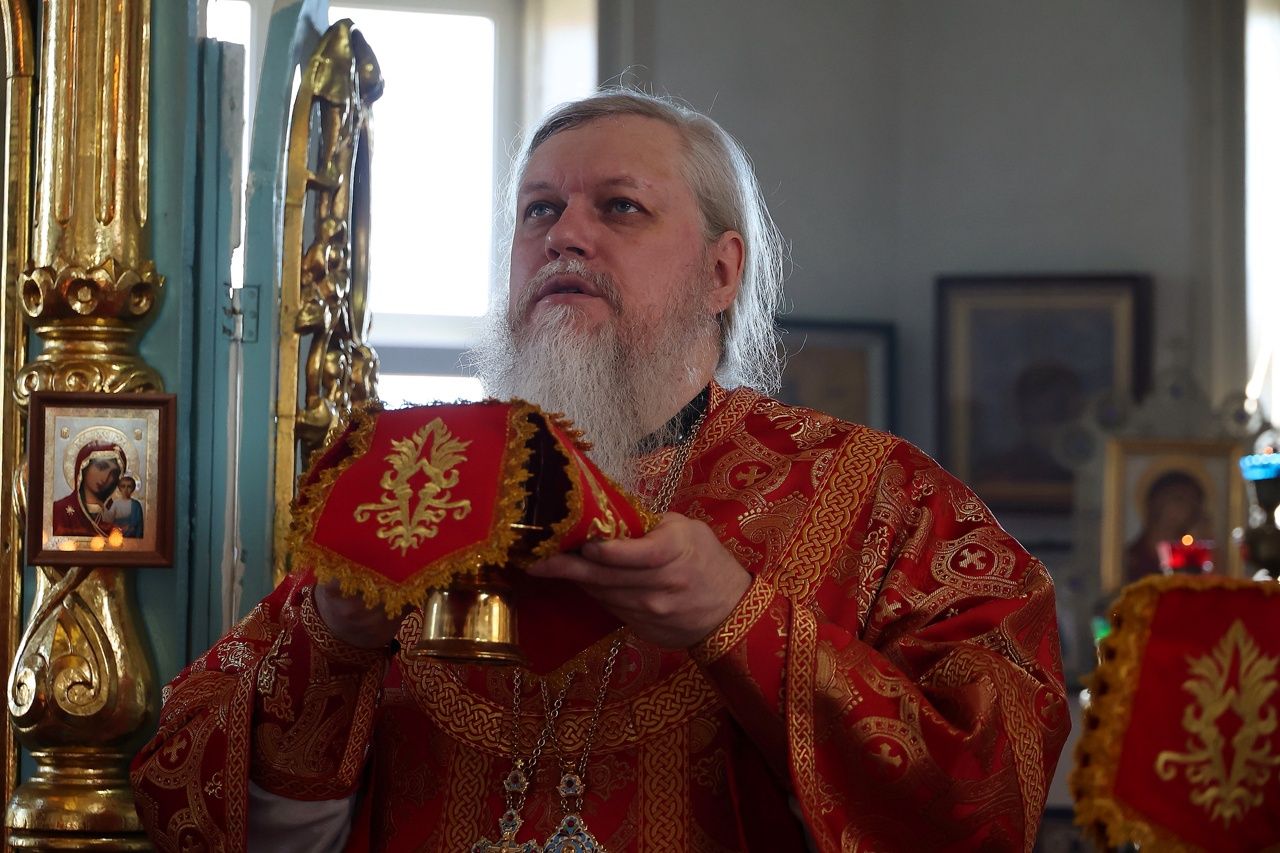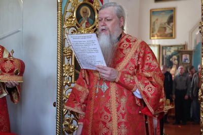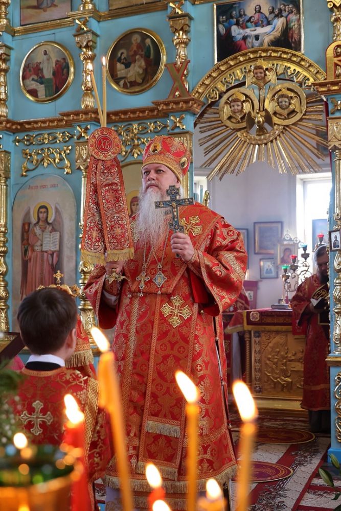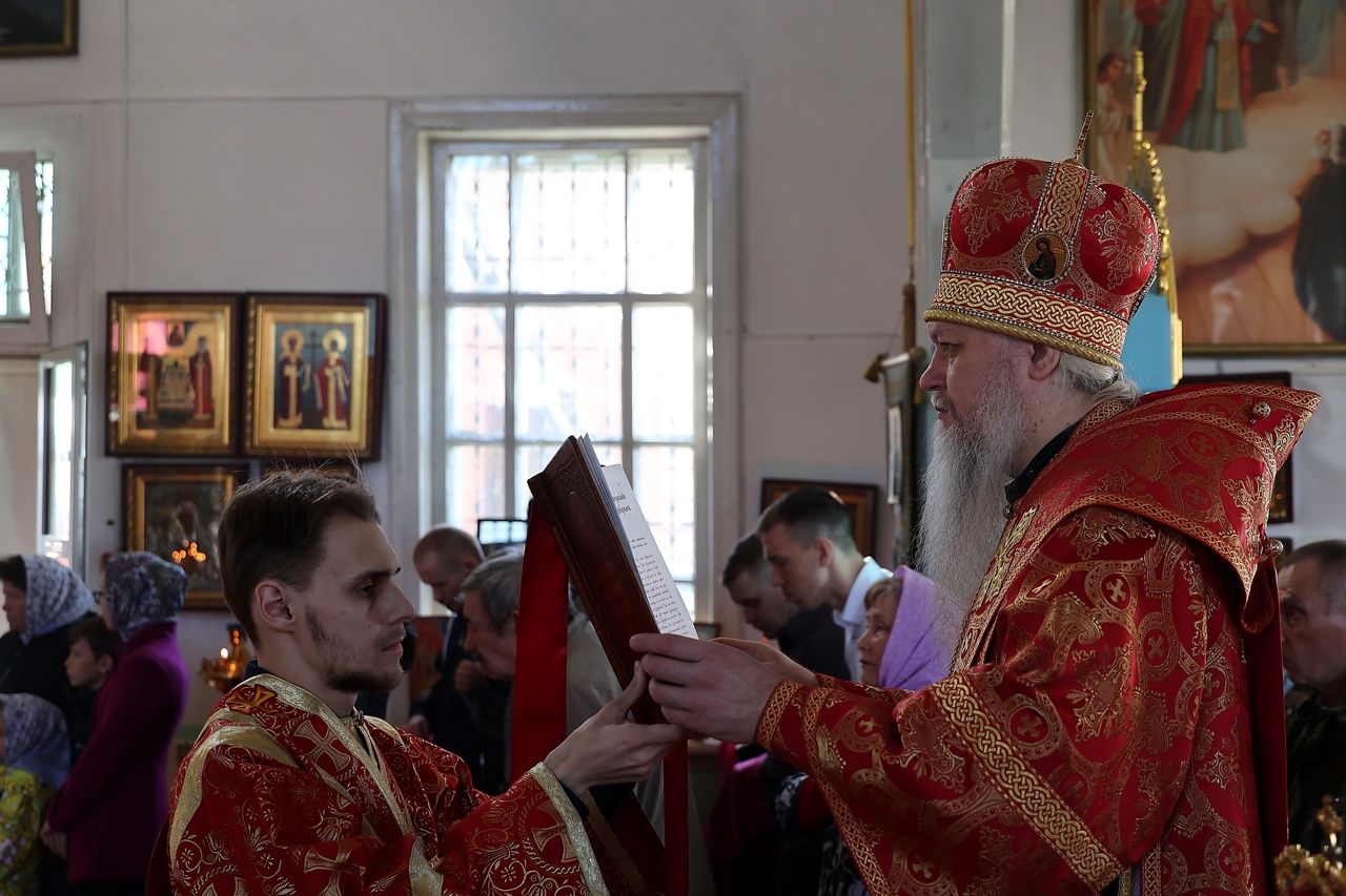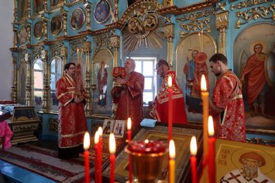 Архипастырю сослужили настоятель храма протоиерей Евгений Усков и клирик Никольского собора г. Волжска диакон Иоанн Захаров, пел малый состав архиерейского хора.