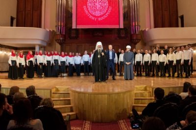 В начале концерта сводный хор Казанской епархии исполнил тропарь Пасхи.