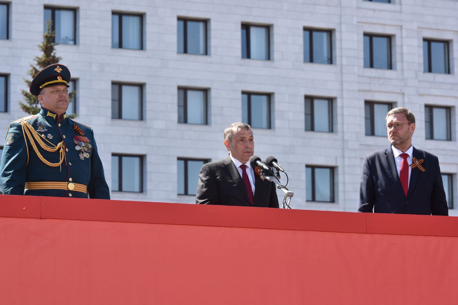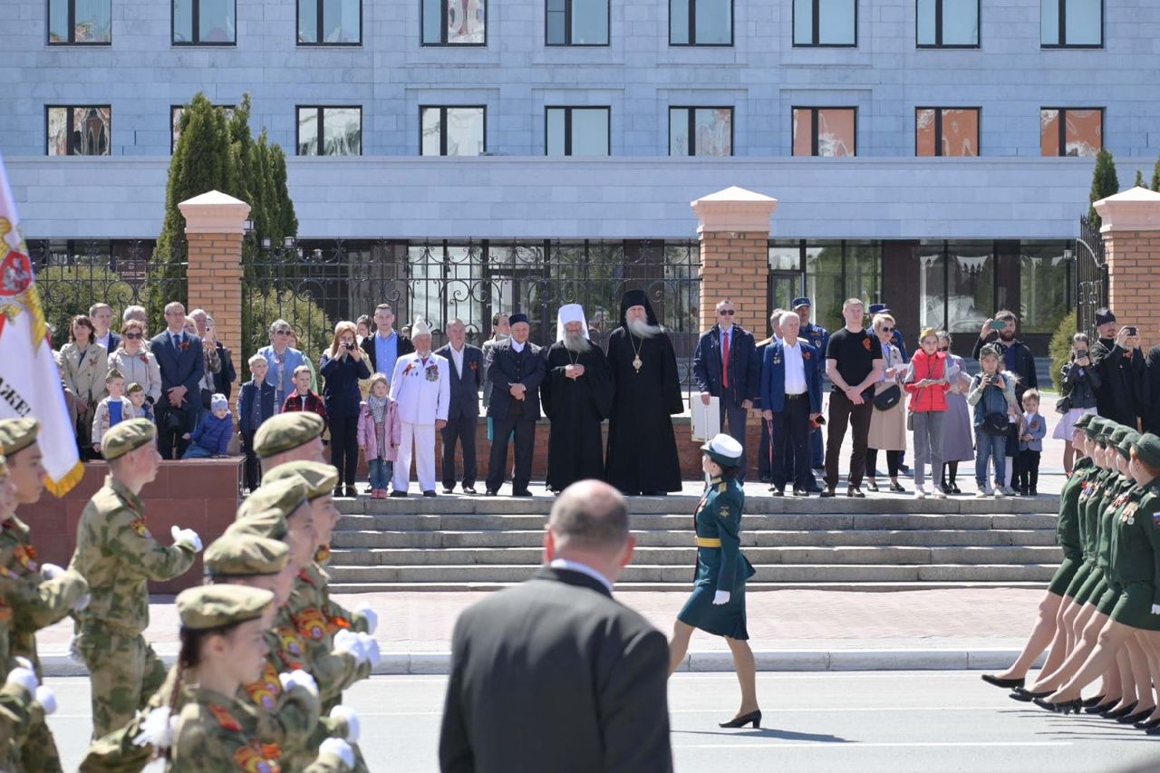 Среди почетных гостей на трибуне были митрополит Йошкар-Олинский и Марийский Иоанн и епископ Волжский и Сернурский Феофан.