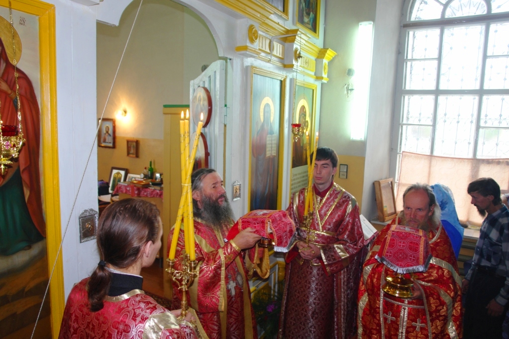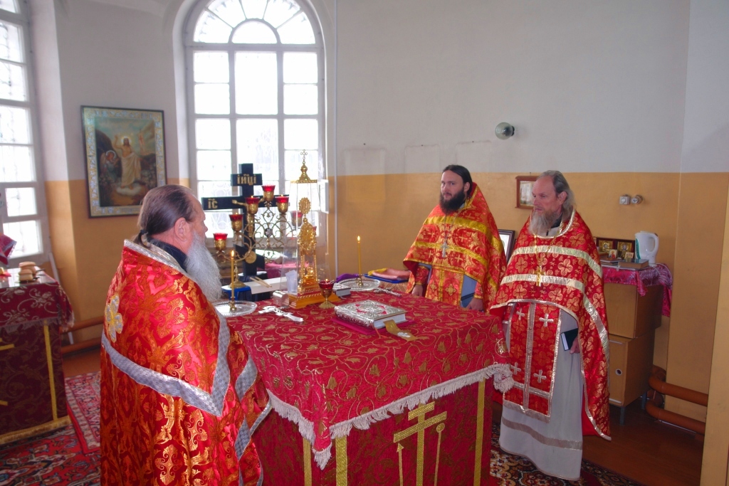 На престольный праздник приехали священники из рядом расположенных храмов. Так из с. Упша приехал настоятель Покровского храма протоиерей Михаил Нехорошков, а из с. Кучка настоятель Сретенского храма иерей Алексий Вязов.