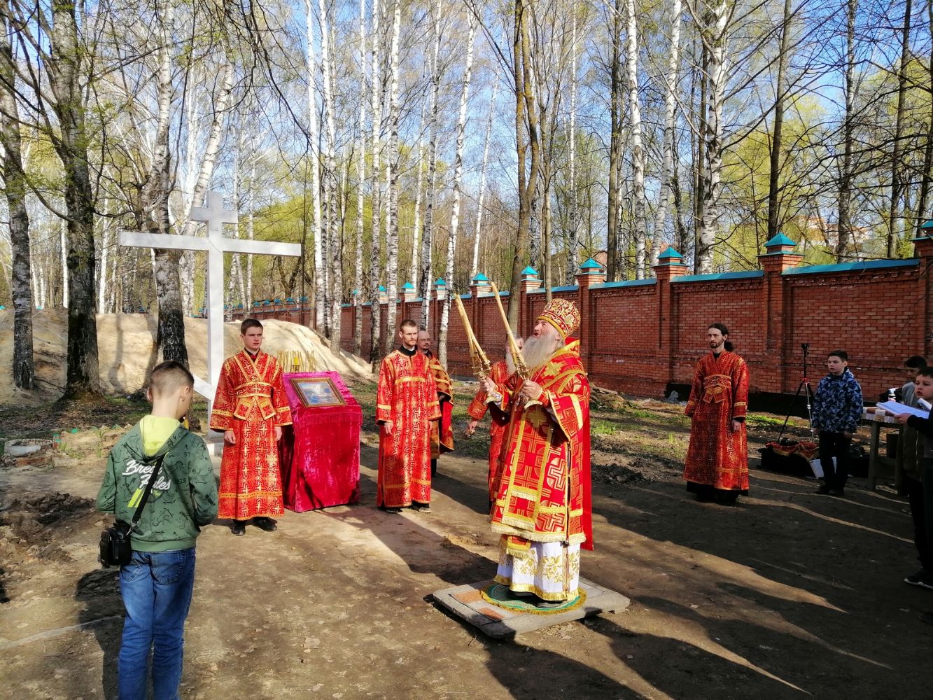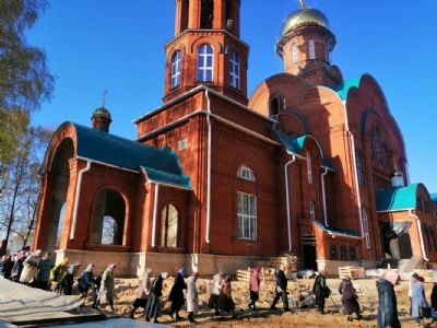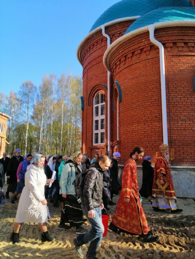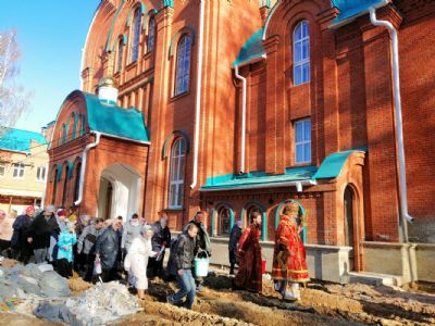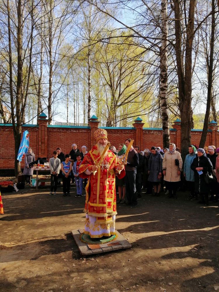 Вечером 8 мая митрополит Йошкар-Олинский и Марийский Иоанн возглавил вечерню с пением акафиста Воскресению Христову на территории строящегося в микрорайоне Тарханово храма в честь иконы Божией Матери «Всех скорбящих Радость».