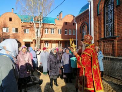 Владыке сослужили клирик Успенского храма иерей Алексий Михеев и протодиакон Михаил Козловский. Песнопения под руководством регента Александры Ивановой исполняли певчие Успенского храма и младшего состава детско-юношеского хора «Благовест».