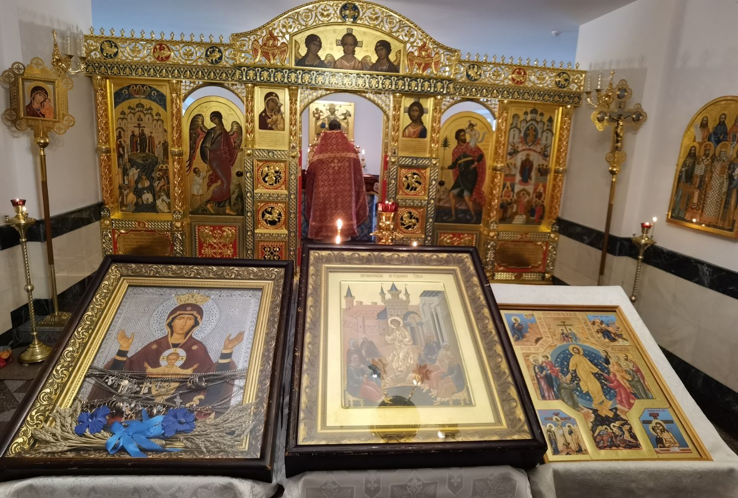 В нынешнем году праздник иконы «Неупиваемая Чаша» совпал с праздником Преполовения Пятидесятницы. В Воскресенском соборе прошло праздничное богослужение – полиелейную утреню и Божественную литургию совершил иерей Игорь Коваль.