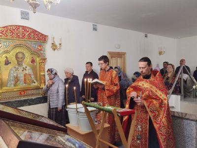 После Литургии руководитель общества трезвости иерей Андрей Кочаков совершил водосвятный молебен с особыми прошениями о страждущих недугами винопития, наркомании, табакокурения и игромании. Верующие с иконой «Неупиваемая Чаша» прошли крестным ходом вокруг храма, затем пропели тропарь и вознесли молитву Пречистой Богоматери перед Ее празднуемым образом.