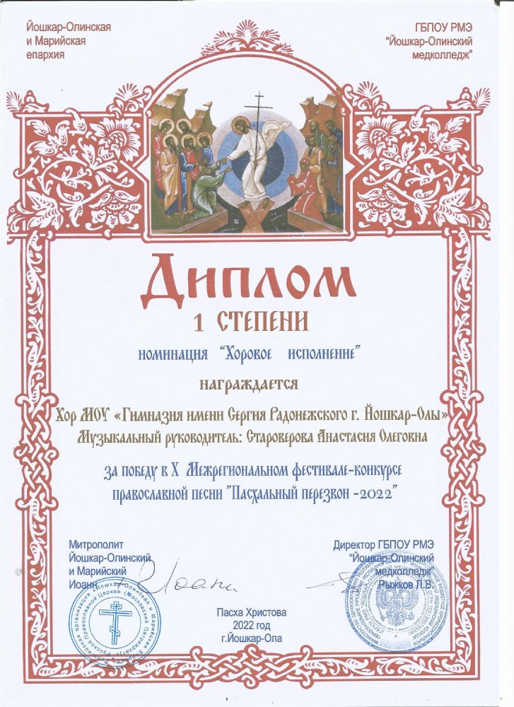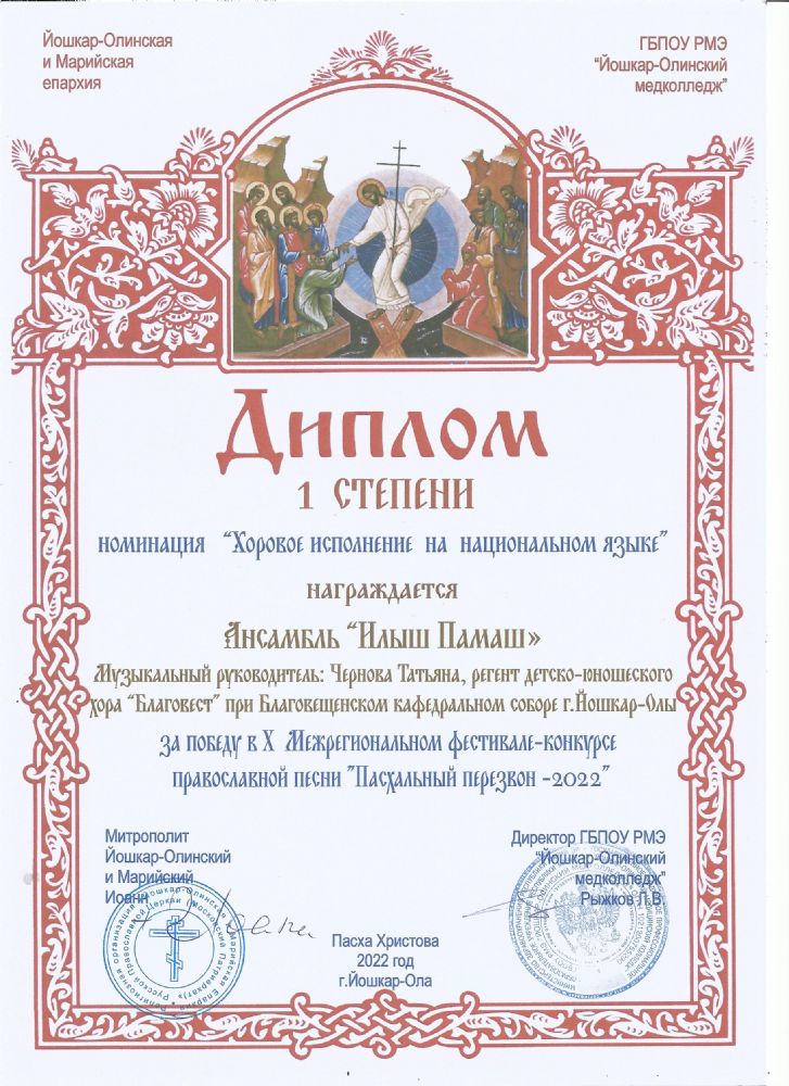 16 мая в Йошкар-Олинском медицинском колледже прошел заочный Х Межрегиональный фестиваль православной песни «Пасхальный перезвон».