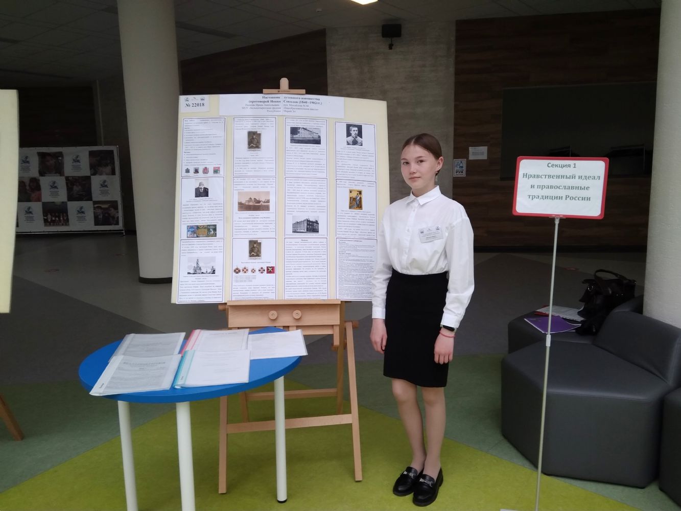 Ирина Иванова представила свою исследовательскую работу на секции «Нравственный идеал и православные традиции России». Тема исследования «Наставник духовного юношества: протоиерей Иоанн Соколов (1840 –1902 гг.). Научный руководитель – педагог Большепаратской школы Маргарита Михайлова. Работа рассказывает о И.Е. Соколове, учителе словесности Пермской духовной семинарии, смотрителе Екатеринбургского духовного училища, который занял достойное место в семье протоиерея Павла Вишневецкого, представители которой известны своей педагогической, просветительской, миссионерской деятельностью.