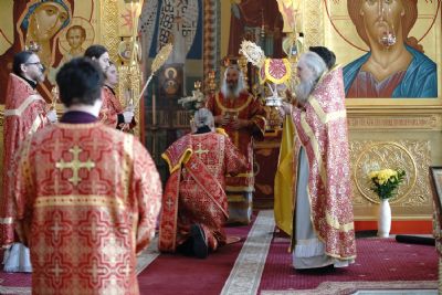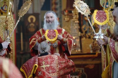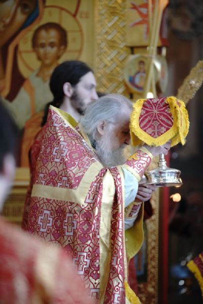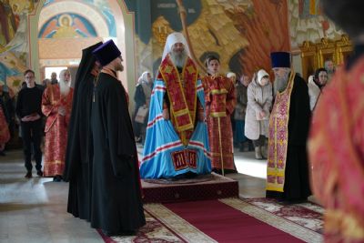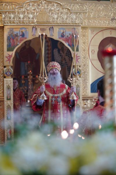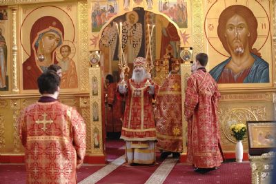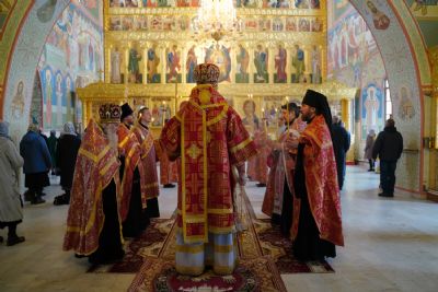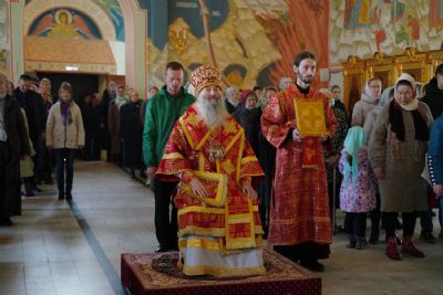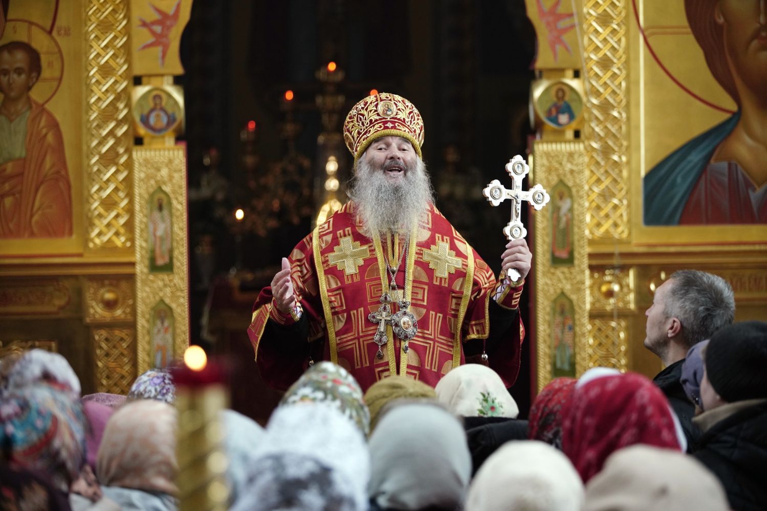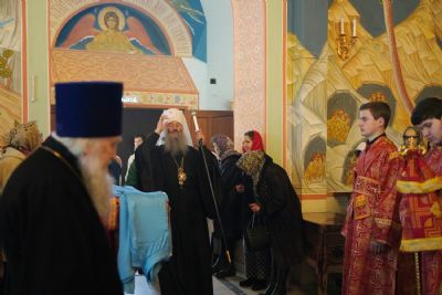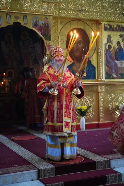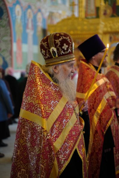 Накануне вечером владыка совершил здесь же праздничное всенощное бдение.