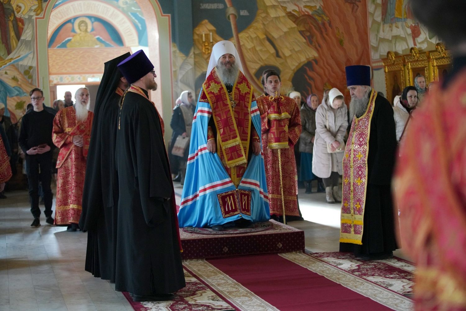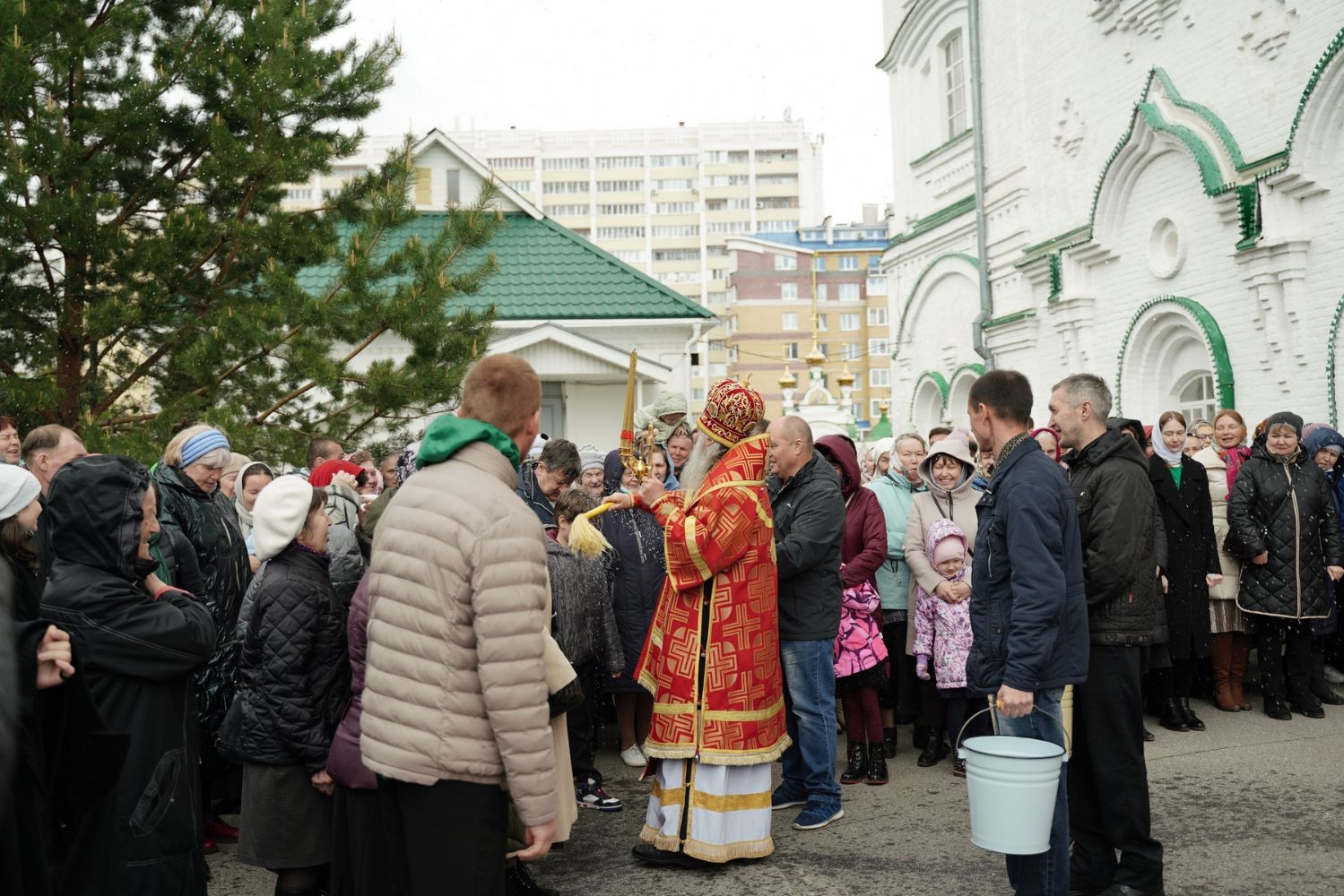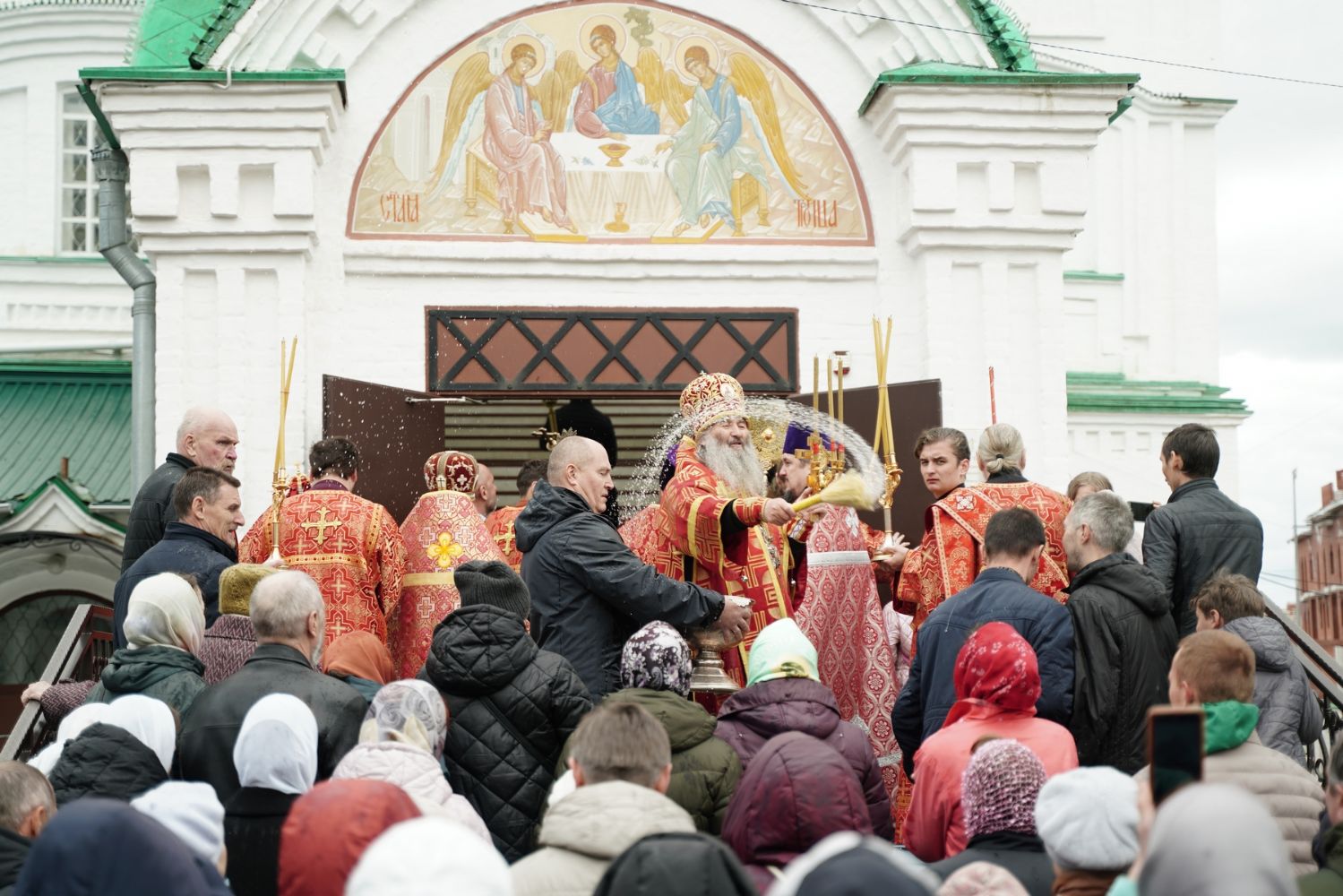 Архипастырю сослужили секретарь Йошкар-Олинского епархиального управления иеромонах Серафим (Пасанаев), настоятель храма протоиерей Евгений Кутырев, клирик Вознесенского собора иерей Александр Деревяшкин и протодиакон Михаил Козловский. Песнопения исполнял хор Троицкого храма под управлением Анны Ярошевич.