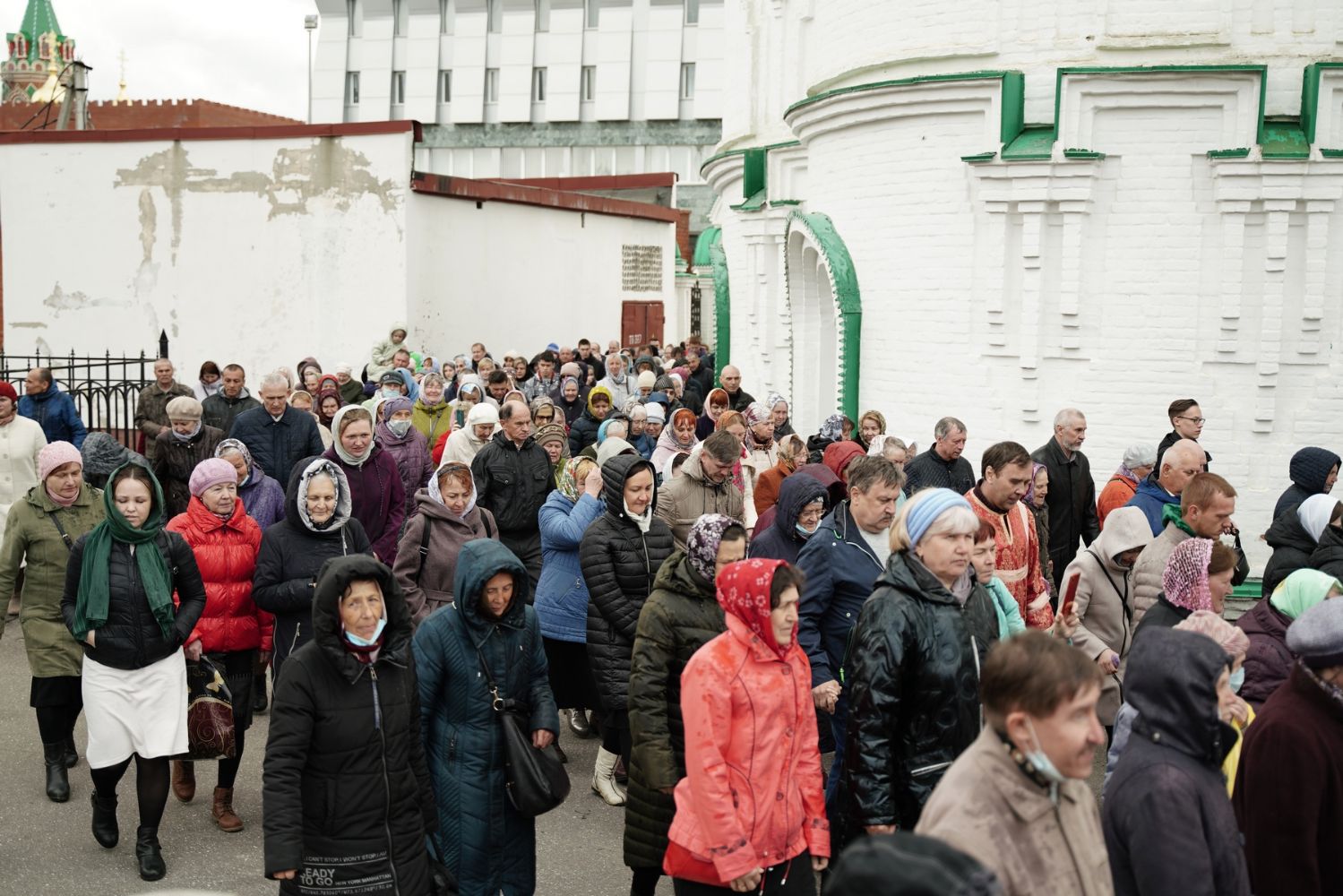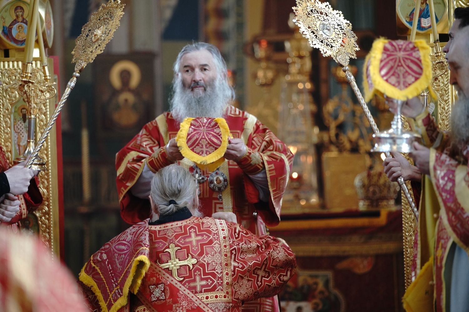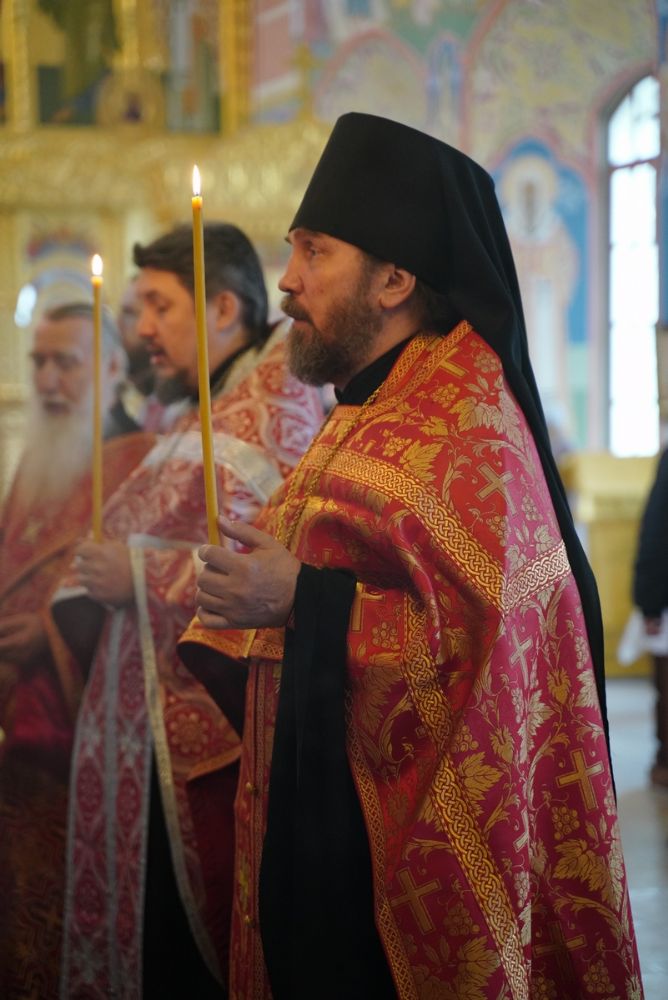 Архипастырю сослужили секретарь Йошкар-Олинского епархиального управления иеромонах Серафим (Пасанаев), настоятель храма протоиерей Евгений Кутырев, клирик Вознесенского собора иерей Александр Деревяшкин и протодиакон Михаил Козловский. Песнопения исполнял хор Троицкого храма под управлением Анны Ярошевич.