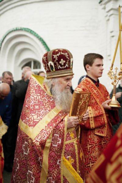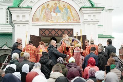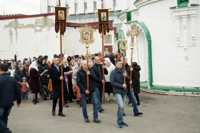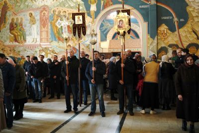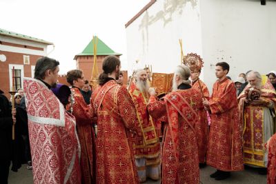 После Литургии, по традиции престольных праздников, прошел крестный ход вокруг храма со чтением Евангелия и кроплением святой водой.