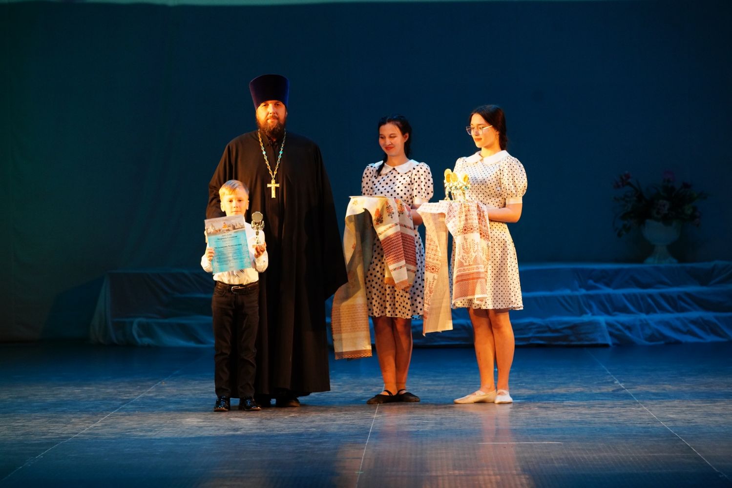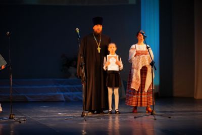 На сцене ДК Архиерейскую премию победителям конкурса вручал руководитель епархиального отдела религиозного образования и катехизации протоиерей Андрей Норкин. В номинации «Сочинение-рассуждение» обладателями премии стали Пологина Арина (школа №3 г. Волжска) и Мудренко София (школа №12 г. Йошкар-Олы). В номинации «Художественное чтение» премию получили Михайлова Лидия (школа № 23 г. Йошкар-Олы) и Коршунова Анастасия (Дворец творчества детей и молодёжи г. Волжска).