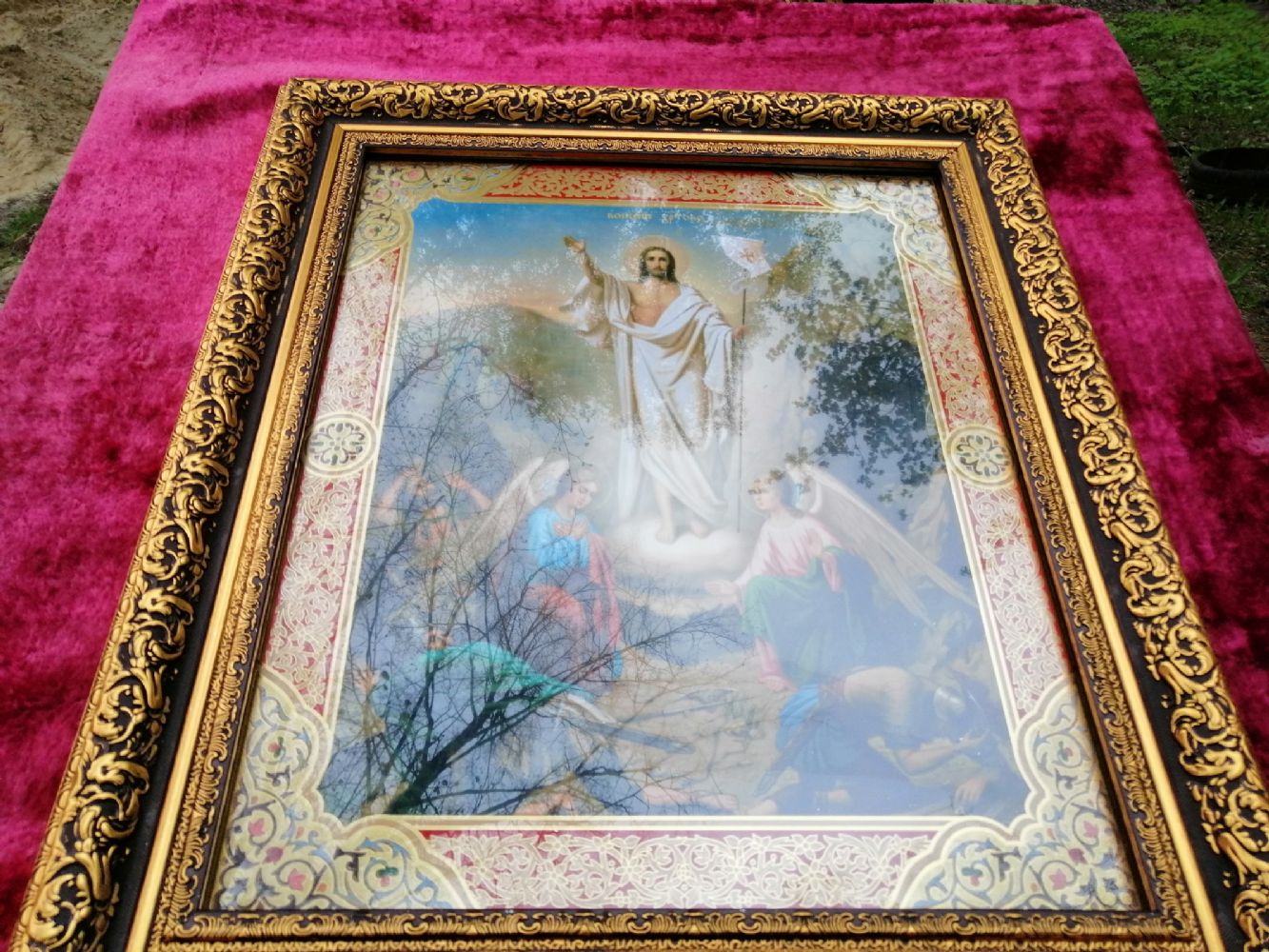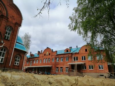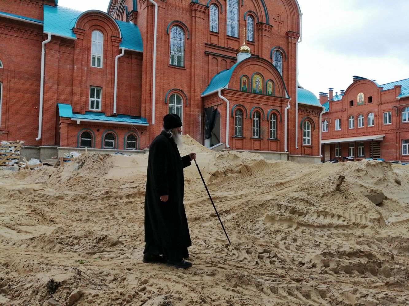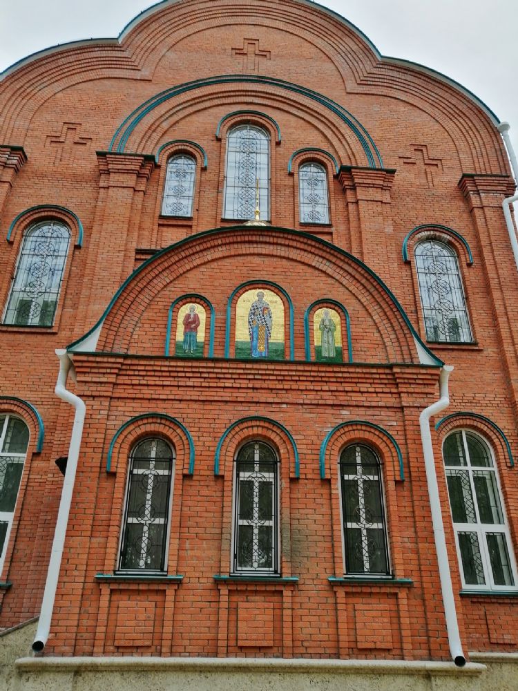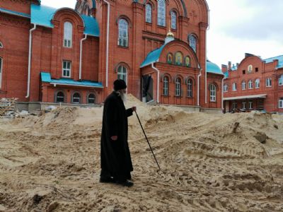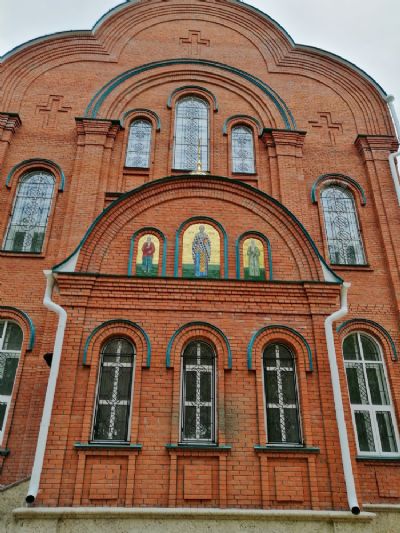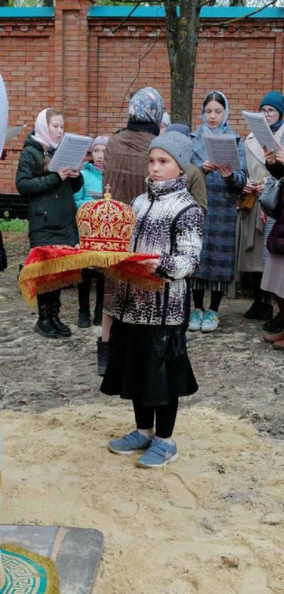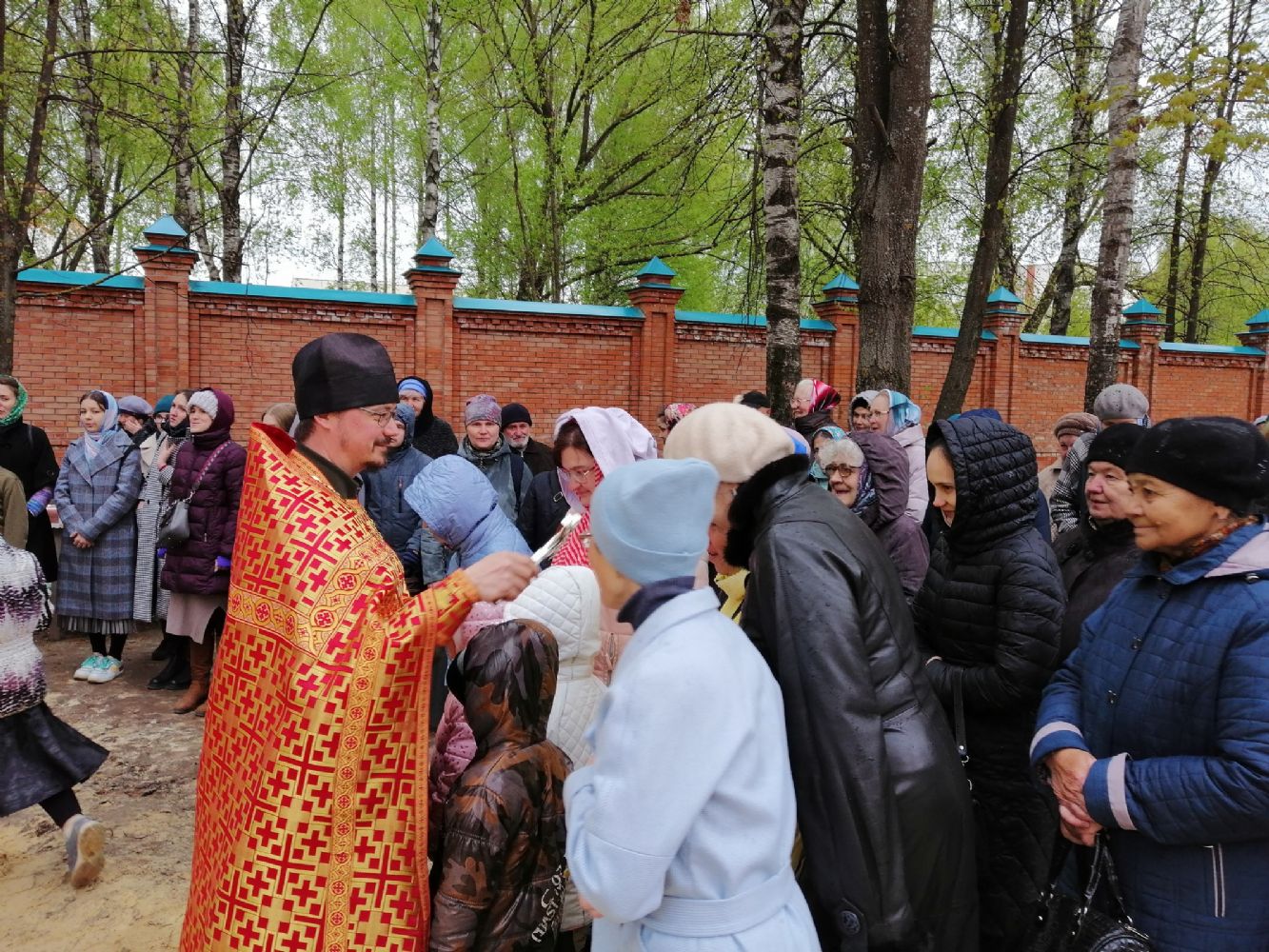 Накануне на внешних стенах храма были установлены мозаичные иконы с изображениями Пресвятой Богородицы и святых. Во время крестного хода владыка освятил их, окропив святой водой.
