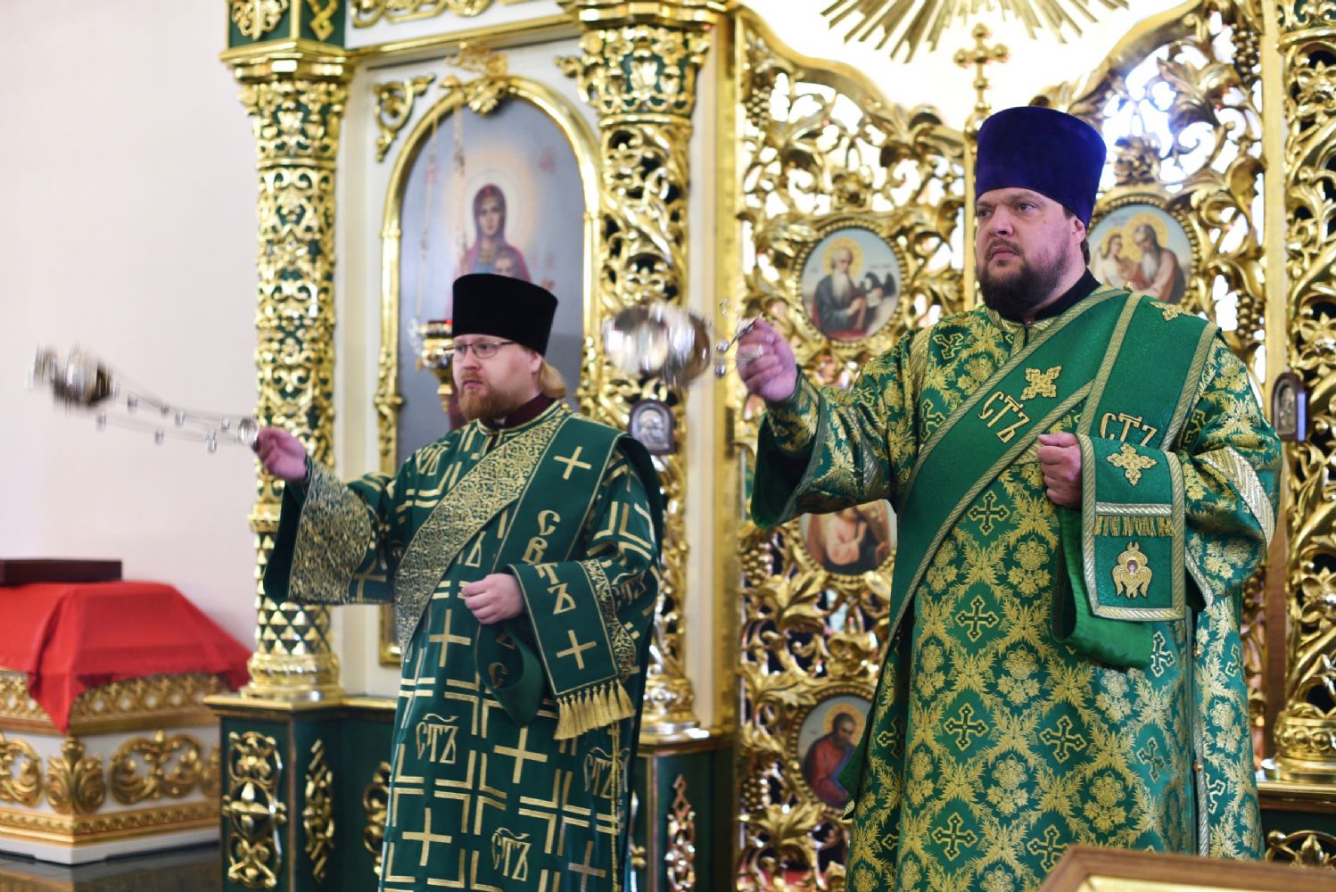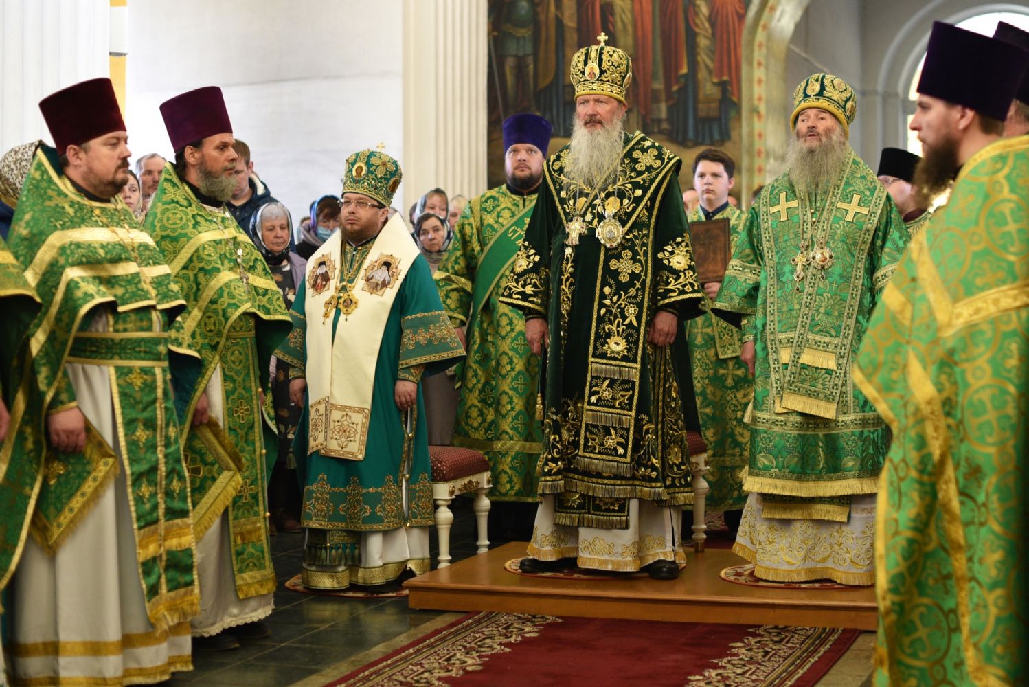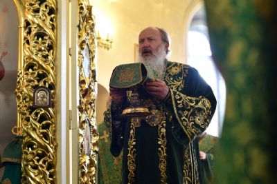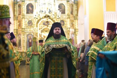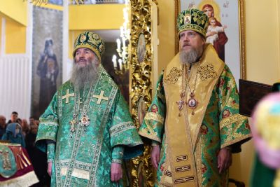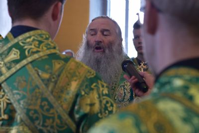 Архипастырям сослужило духовенство Вятской митрополии. Песнопения исполнял детско-юношеский архиерейский хор Яранской епархии под управлением Марии Кирильчук. Проповедь перед причастием мирян произнес ключарь Троицкого собора иеромонах Давид (Сивер).