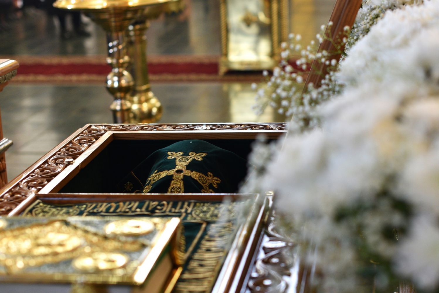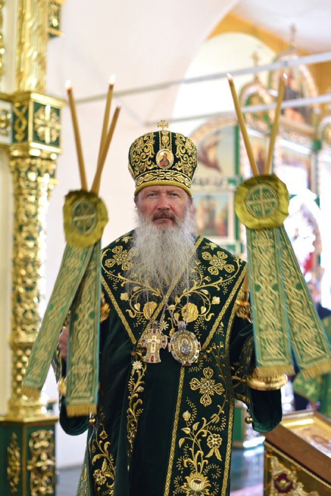 В конце богослужения Преосвященные владыки совершили славление преподобному Матфею и приложились к его святым мощам. Затем митрополит Марк поздравил верующих с воскресным днем и 95-й годовщиной преставления яранского подвижника.