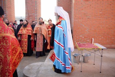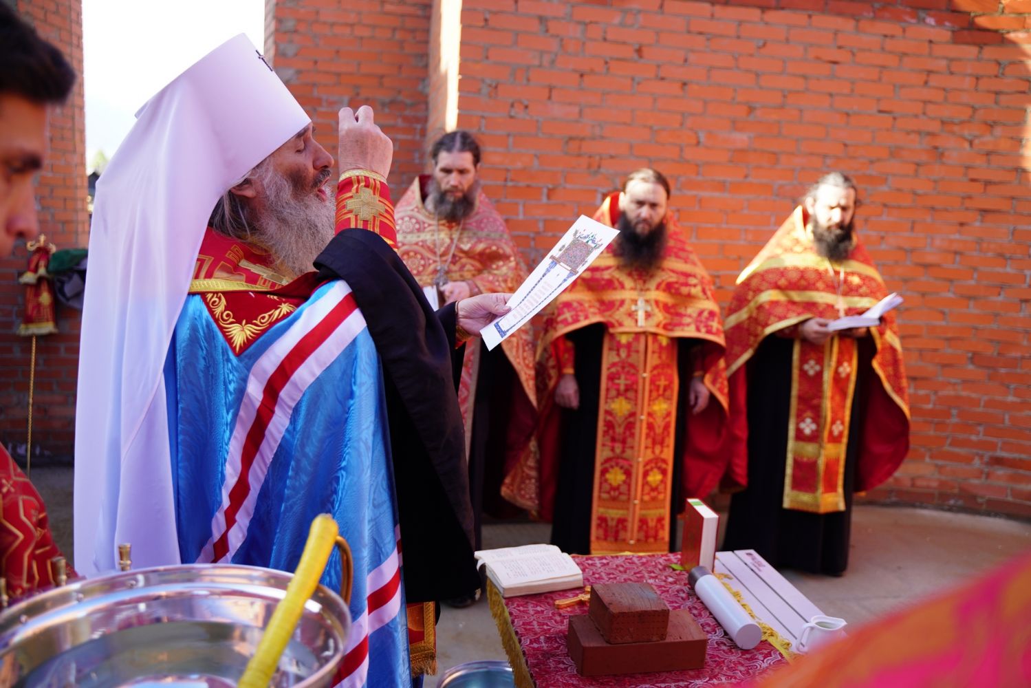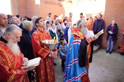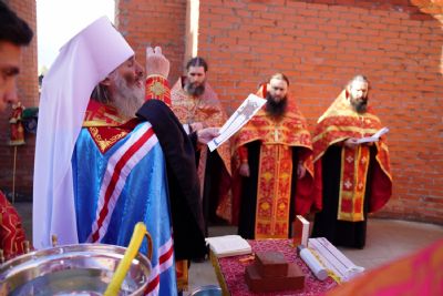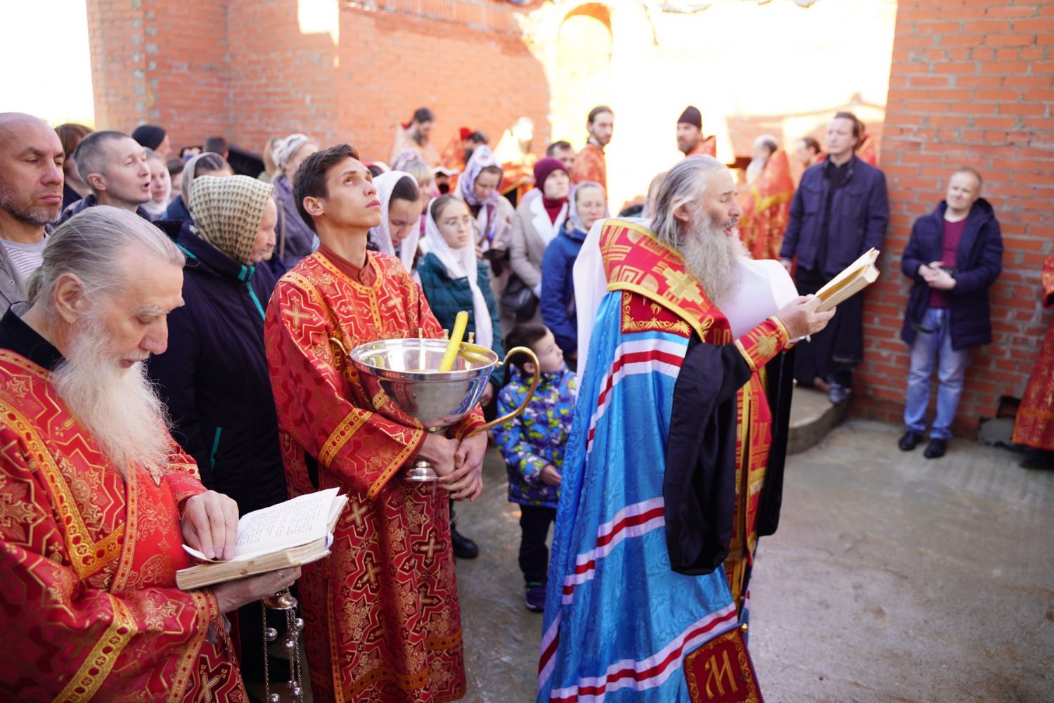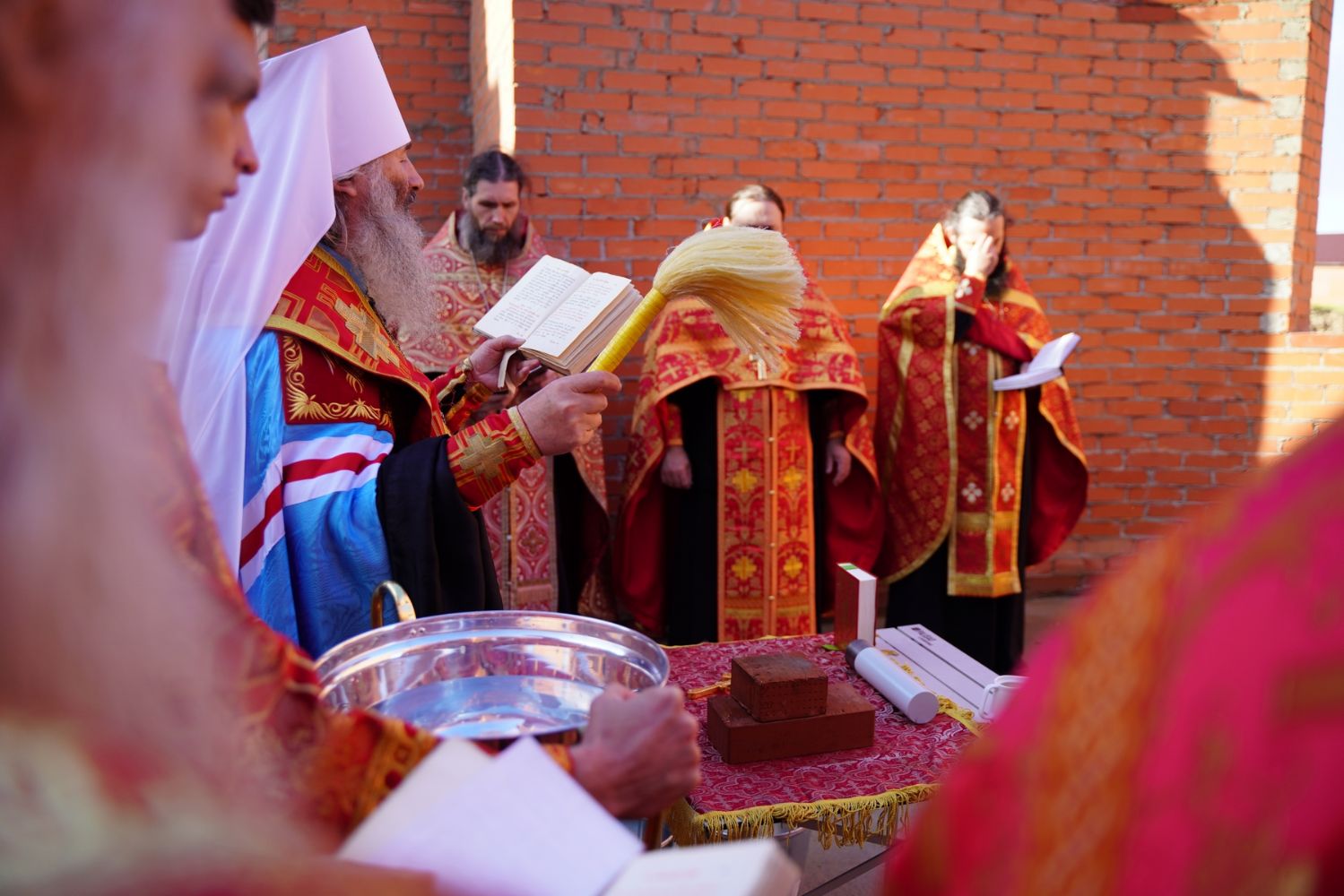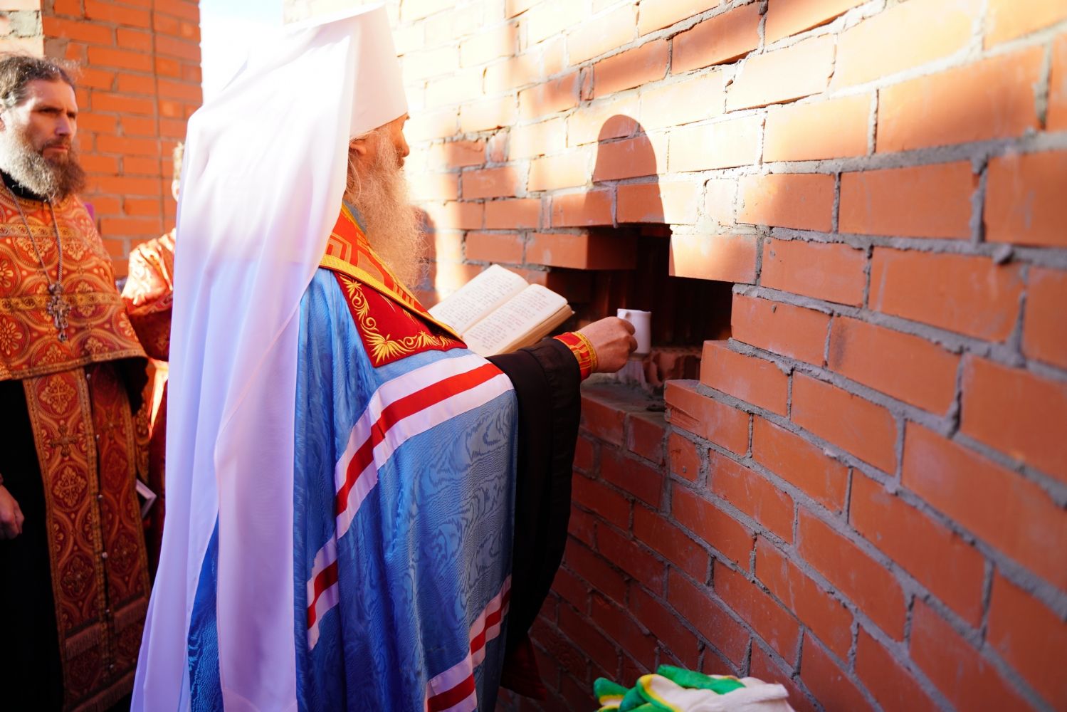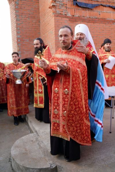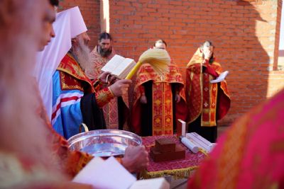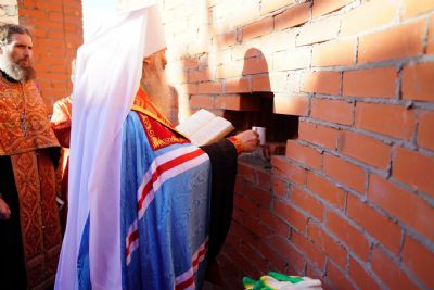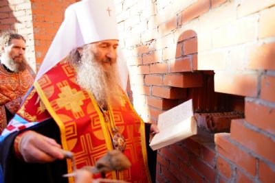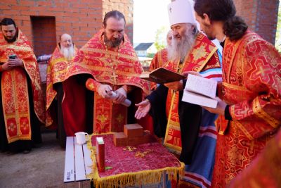 На радостное событие у строящегося храма собралось более сотни верующих. Митрополит Иоанн освятил камень в основание храма кроплением святой водой и помазанием елеем. Зачитав закладную грамоту с указанием имени Святейшего Патриарха и правящего архиерея, а также указанием, какие мощи будут заложены в престол при будущем освящении храма, владыка вложил капсулу в основание алтарной стены.