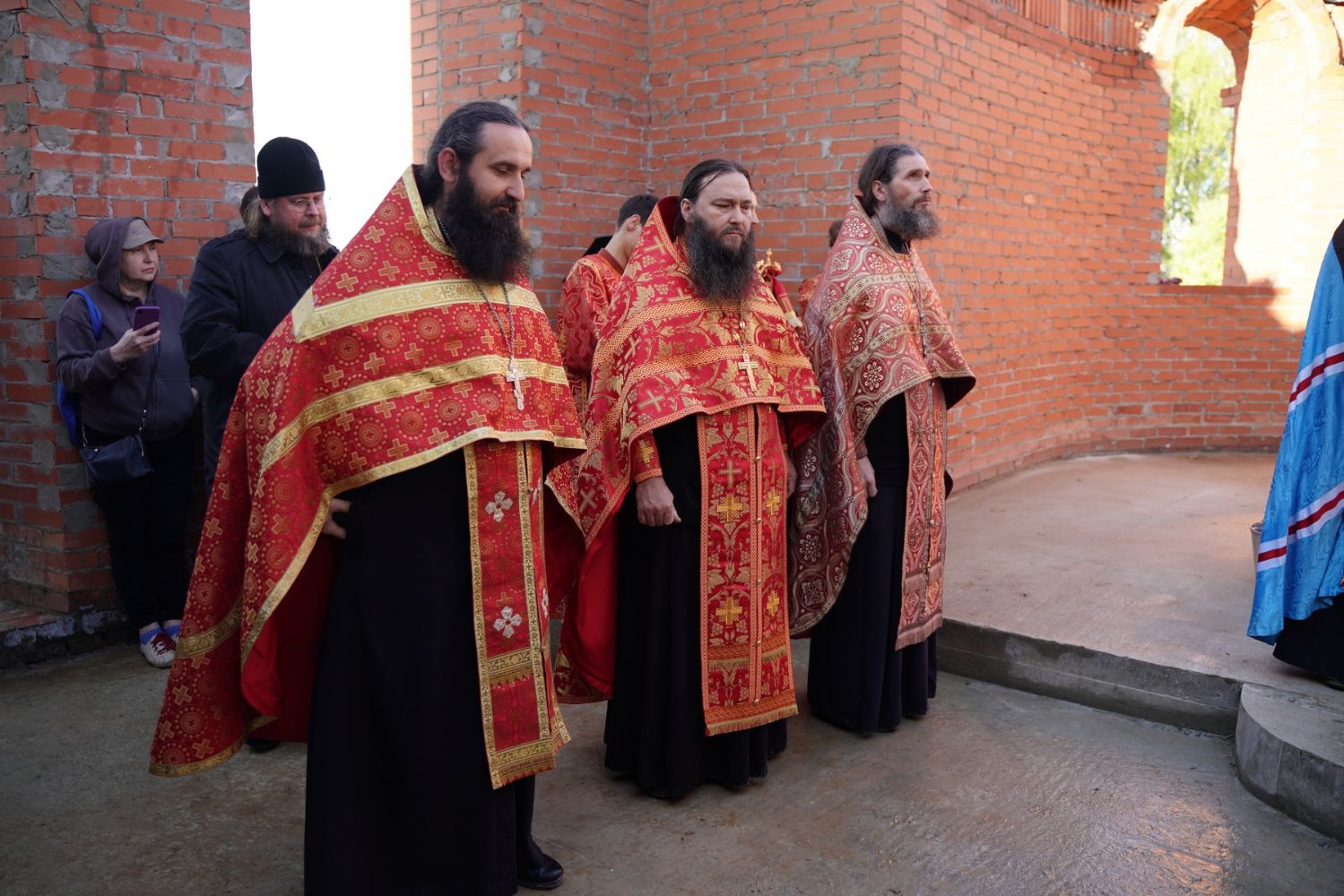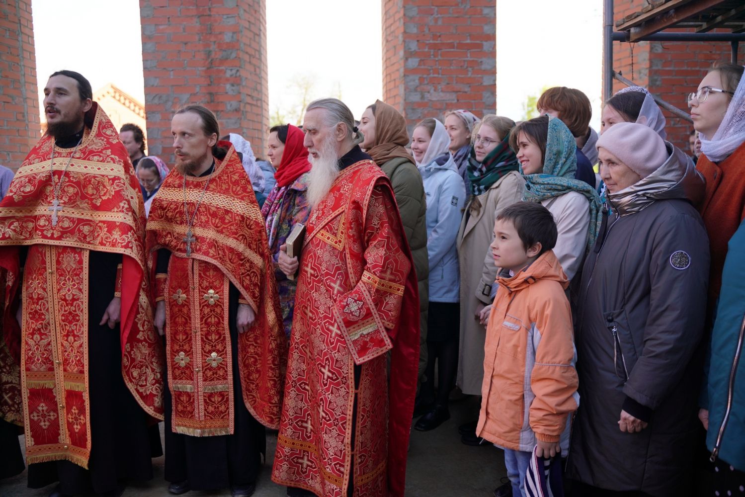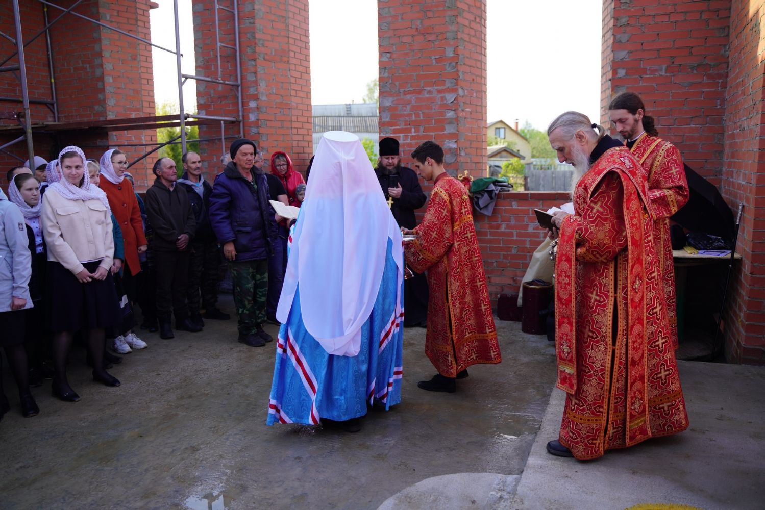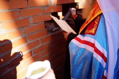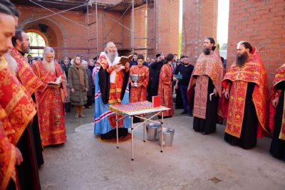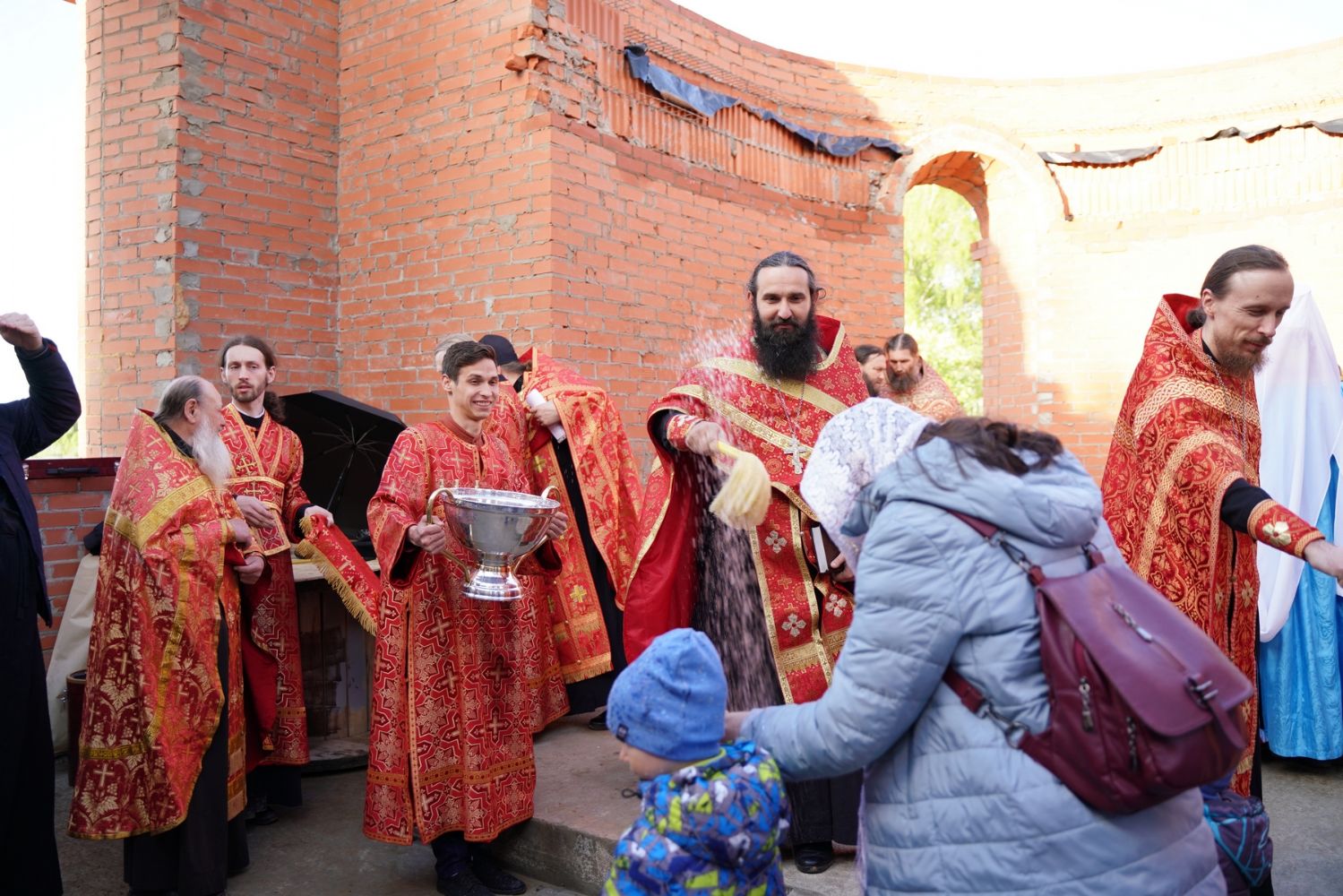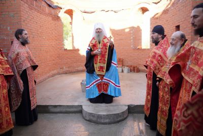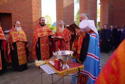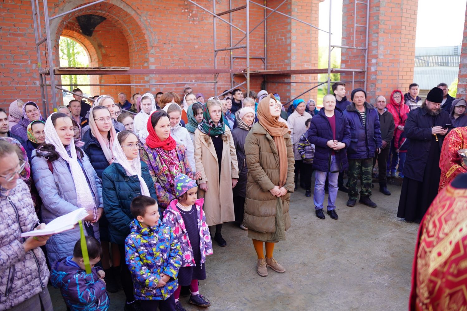 На радостное событие у строящегося храма собралось более сотни верующих. Митрополит Иоанн освятил камень в основание храма кроплением святой водой и помазанием елеем. Зачитав закладную грамоту с указанием имени Святейшего Патриарха и правящего архиерея, а также указанием, какие мощи будут заложены в престол при будущем освящении храма, владыка вложил капсулу в основание алтарной стены.