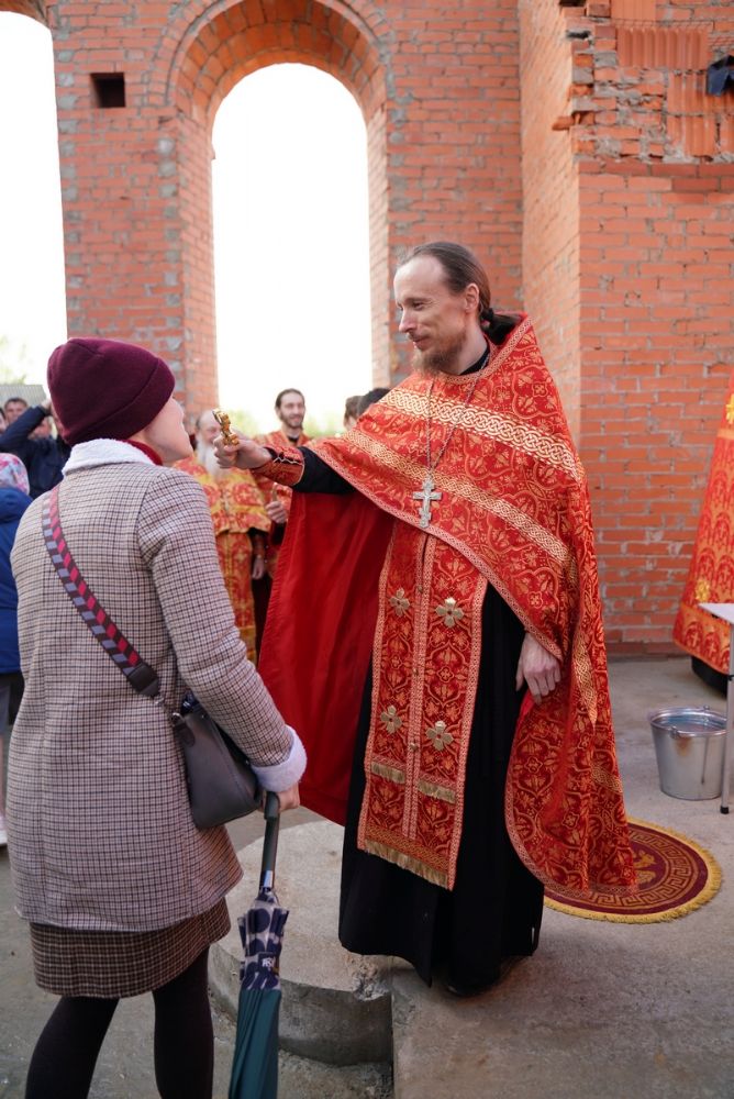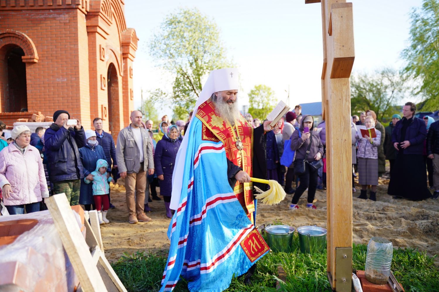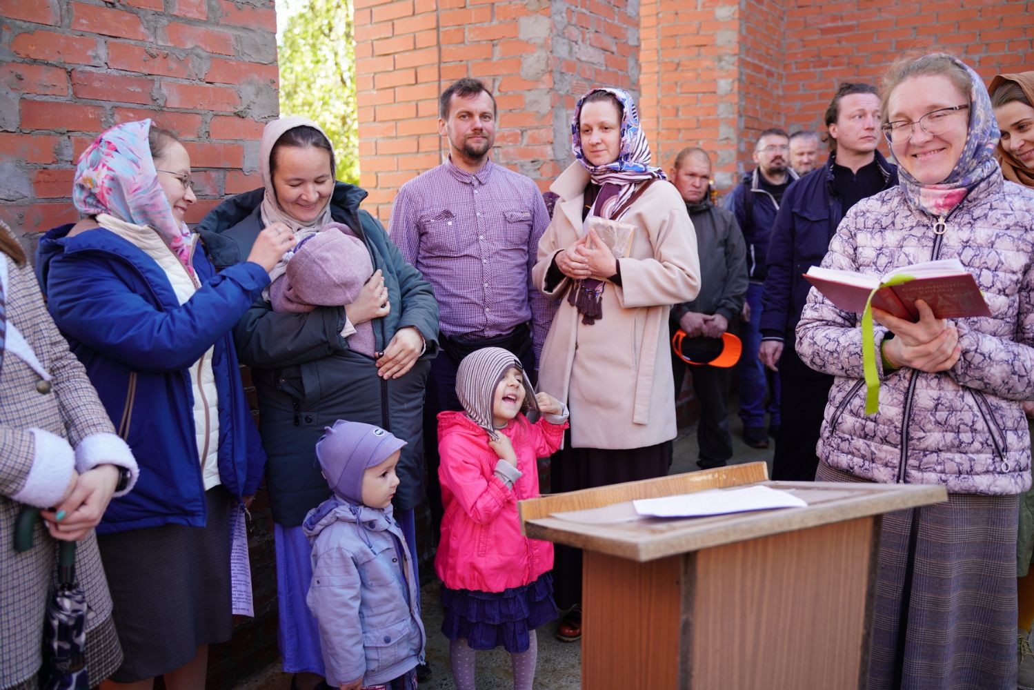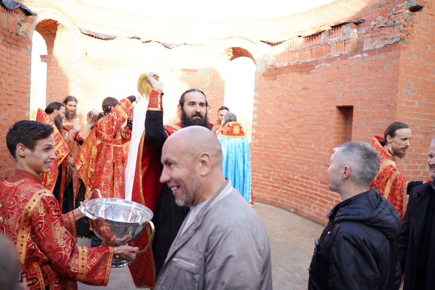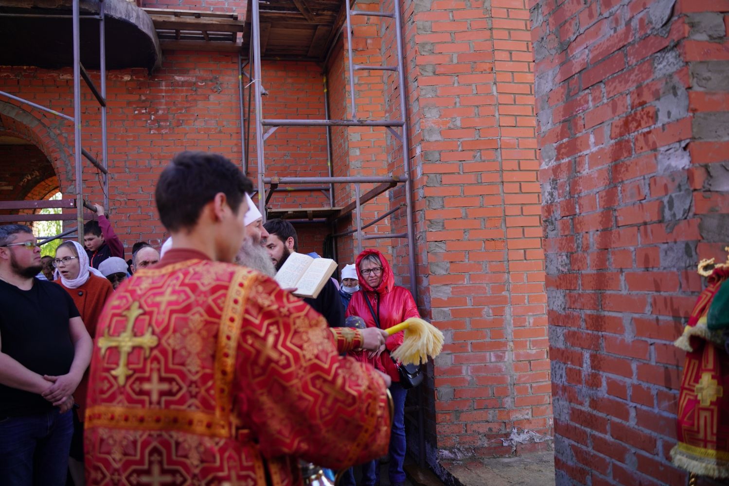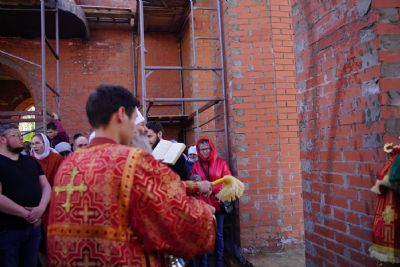 На радостное событие у строящегося храма собралось более сотни верующих. Митрополит Иоанн освятил камень в основание храма кроплением святой водой и помазанием елеем. Зачитав закладную грамоту с указанием имени Святейшего Патриарха и правящего архиерея, а также указанием, какие мощи будут заложены в престол при будущем освящении храма, владыка вложил капсулу в основание алтарной стены.