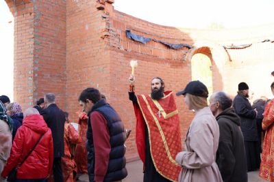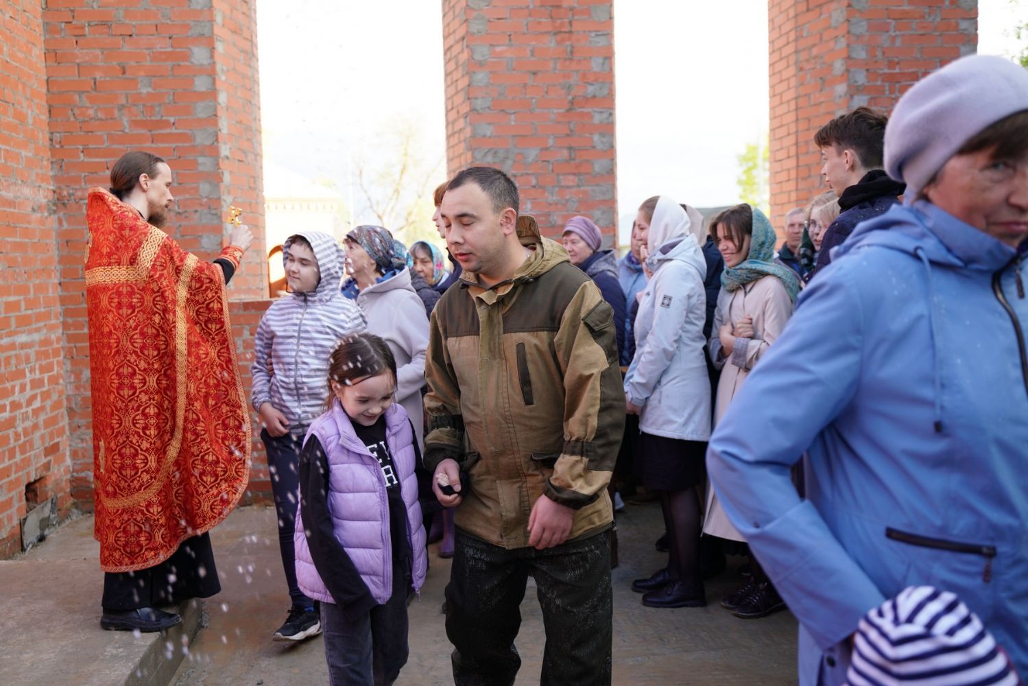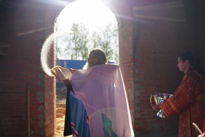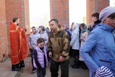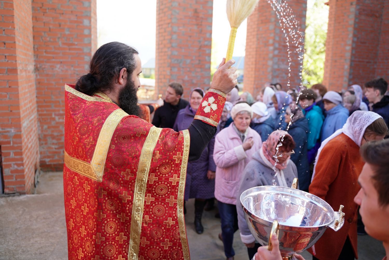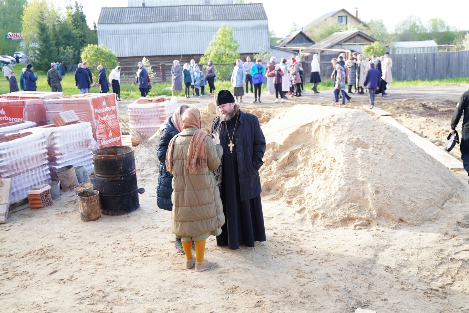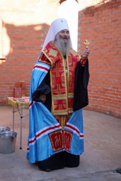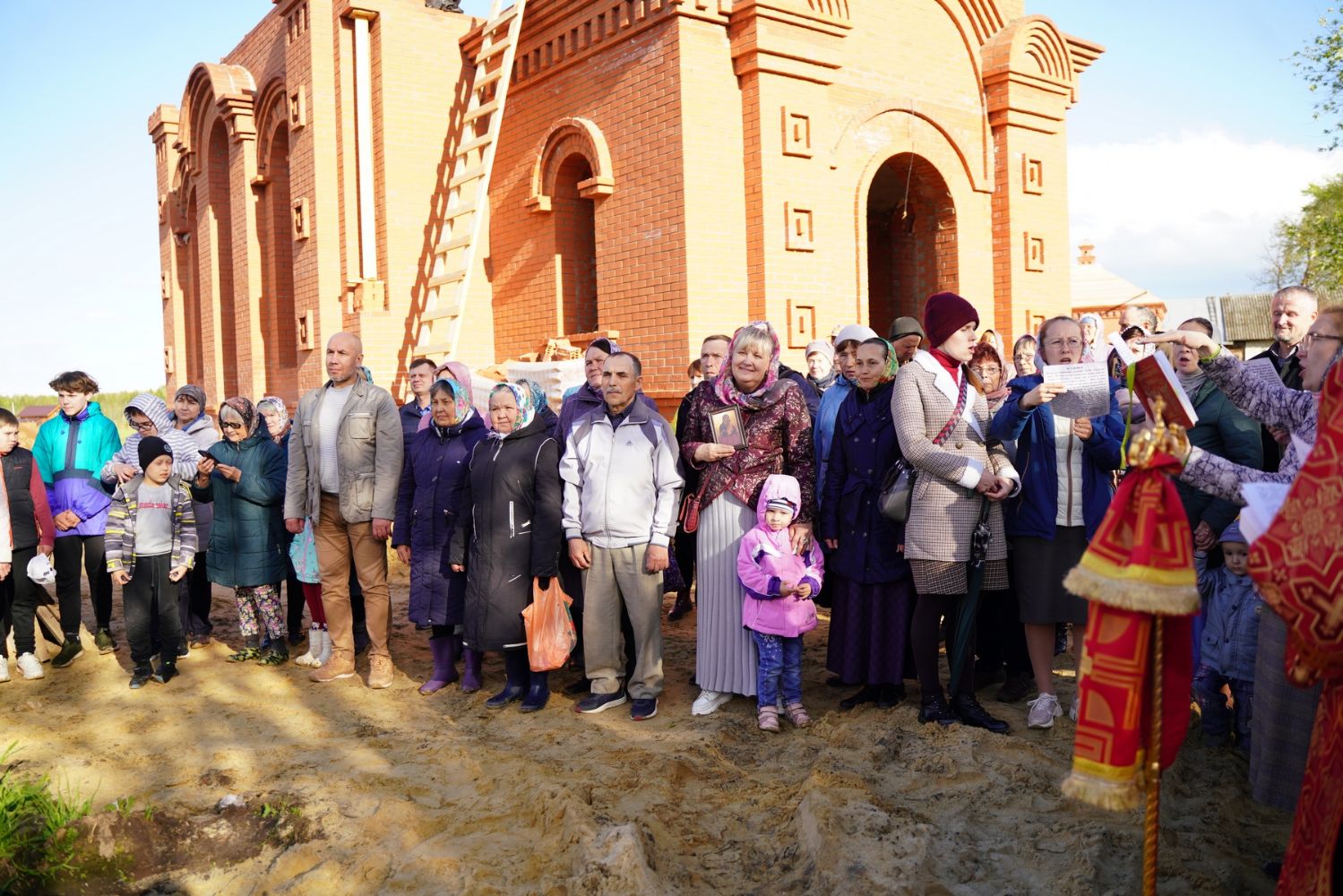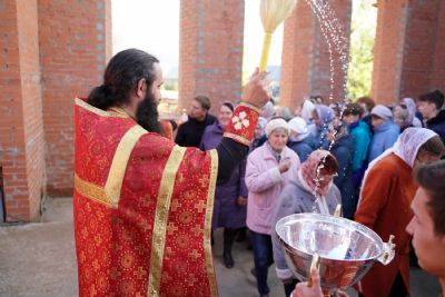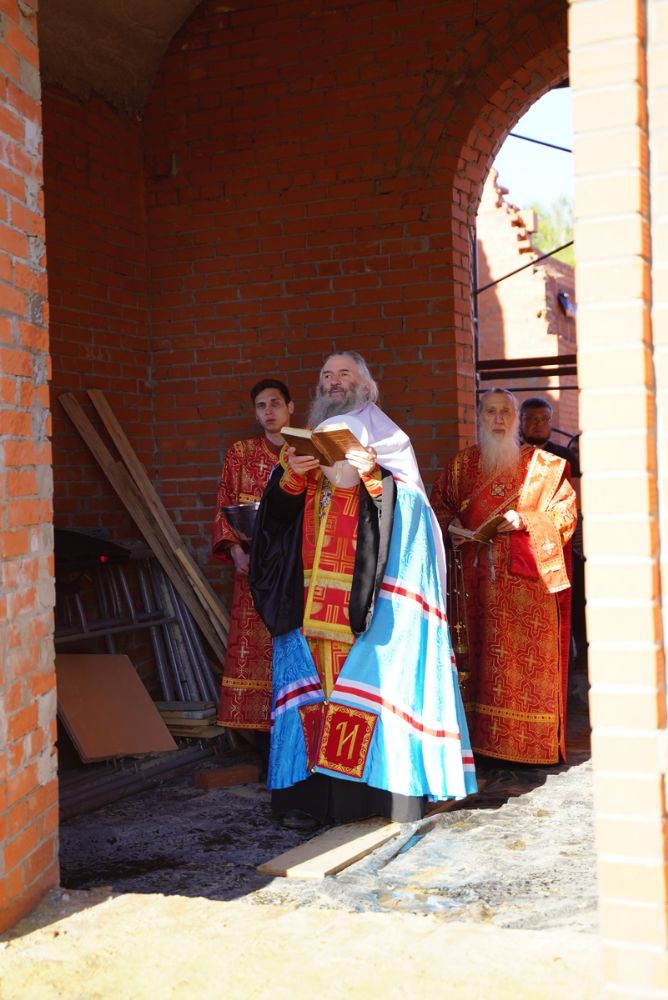 На радостное событие у строящегося храма собралось более сотни верующих. Митрополит Иоанн освятил камень в основание храма кроплением святой водой и помазанием елеем. Зачитав закладную грамоту с указанием имени Святейшего Патриарха и правящего архиерея, а также указанием, какие мощи будут заложены в престол при будущем освящении храма, владыка вложил капсулу в основание алтарной стены.