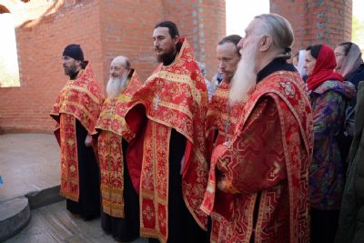 «Воистину Христос воскресе, и дивны дела Пресвятой Троицы, Которая сооружает храм в честь Нее. Все творится Десницей божественной, а мы с вами делаемся руками милости Господней. Святой праведный Иоанн Кронштадтский говорит: нет большей милости, чем быть руками Его созидания и творения, особенно же созидания храма Божия. Сегодня совершается закладка сего храма. Водружается Крест животворящий, силою которого сие место охраняемо, благословляемо и освящаемо.
