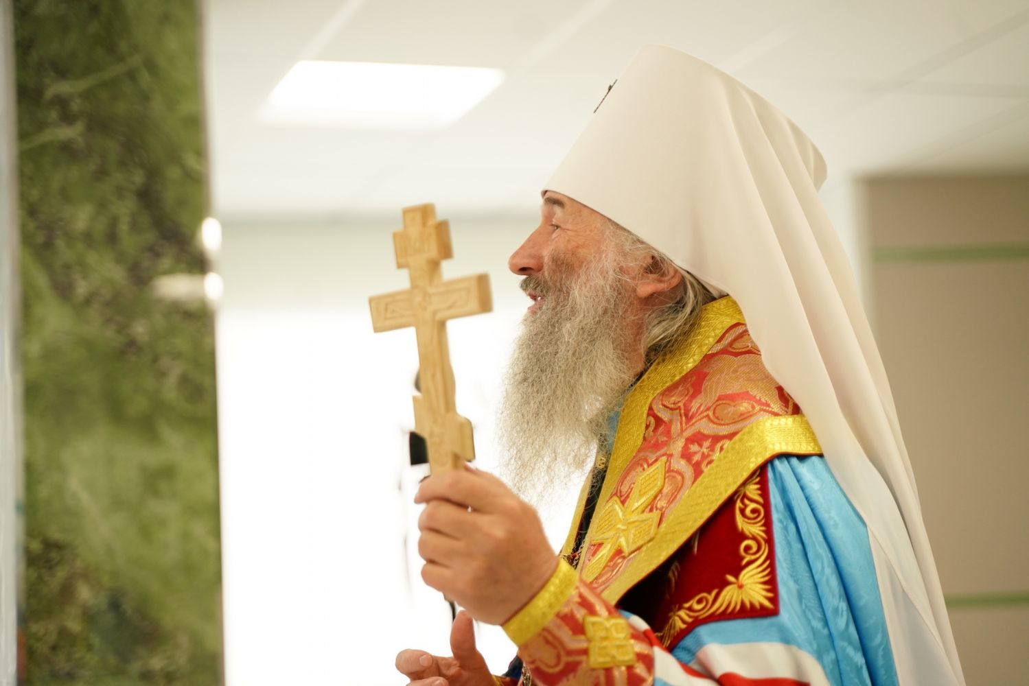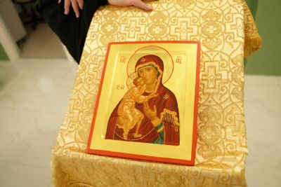 Дай Бог нам всем мудрость, благословение Господне, и пусть каждый из нас за порогом этих дверей оставляет все домашние земные заботы и, входя в это светлое помещение, помнит, что только чистое сердце познает милость Божию и радость о рождении нового чада».