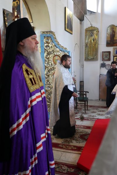 За Литургией Его Преосвященству сослужили настоятель Вознесенского храма протоиерей Вячеслав Ершов, духовенство Северного церковного округа и клирик Никольского собора г. Волжска диакон Иоанн Захаров.