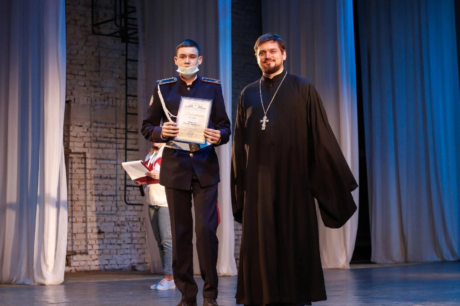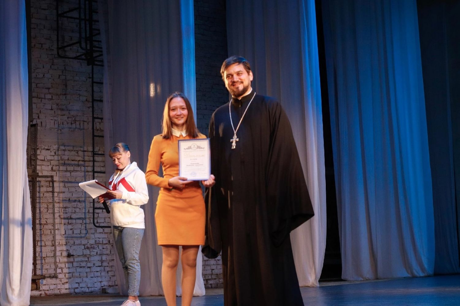 В завершение отец Никита вручил дипломы участникам научно-исследовательской конференции "Традиционные ценности в современном мире. Связь поколений".