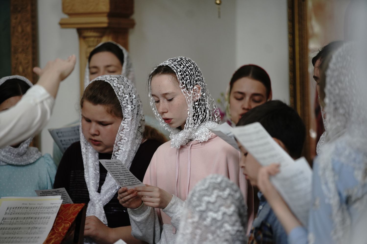 Архипастырю сослужили секретарь Йошкар-Олинского епархиального управления иеромонах Серафим (Пасанаев), клирик монастыря иерей Михаил Лежнин, настоятель храма Казанской иконы Божией Матери с. Нурма иерей Александр Коваль, клирик Воскресенского собора г. Йошкар-Олы иерей Игорь Коваль и протодиакон Михаил Козловский. Песнопения исполнял детско-юношеский хор «Благовест» под управлением регента Татьяны Черновой.