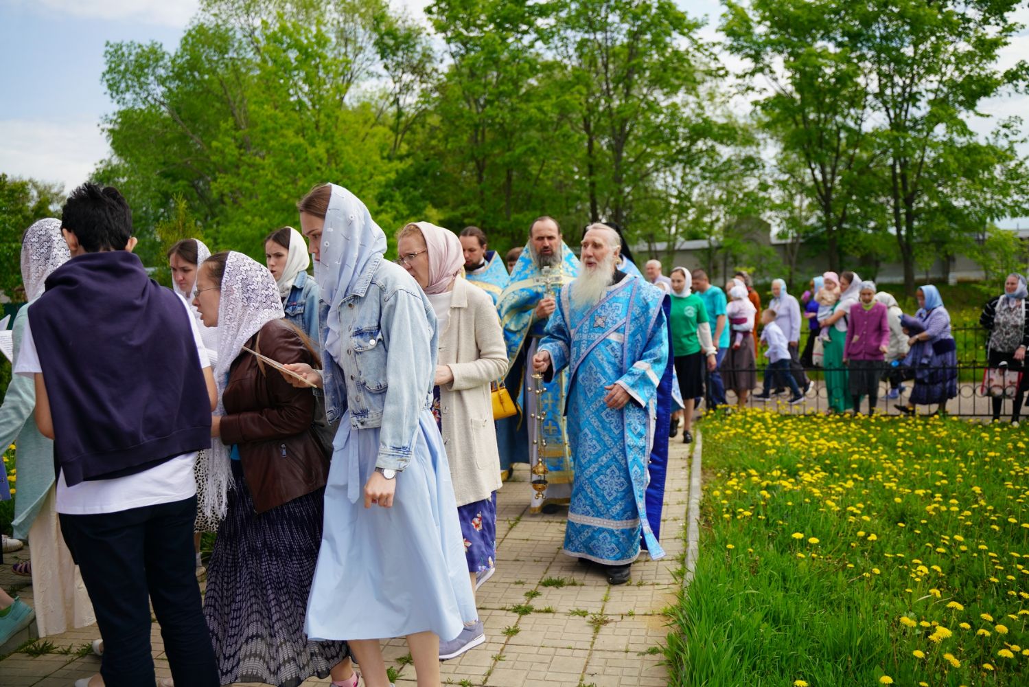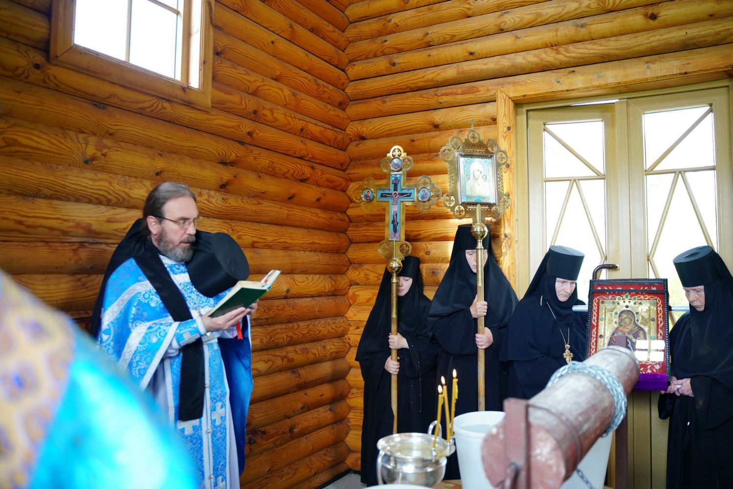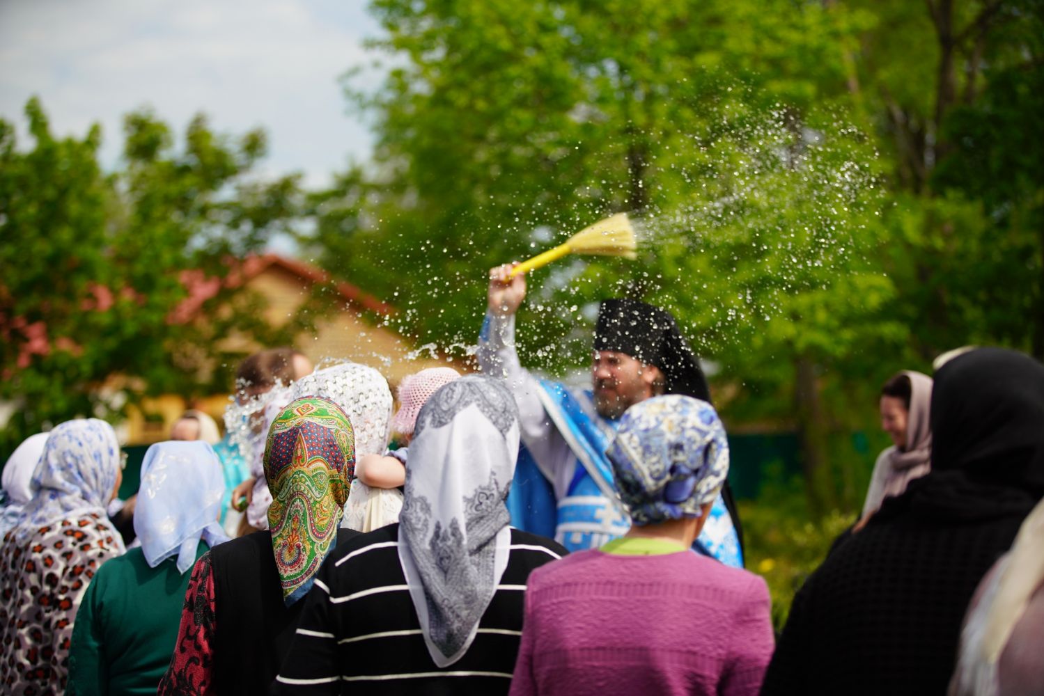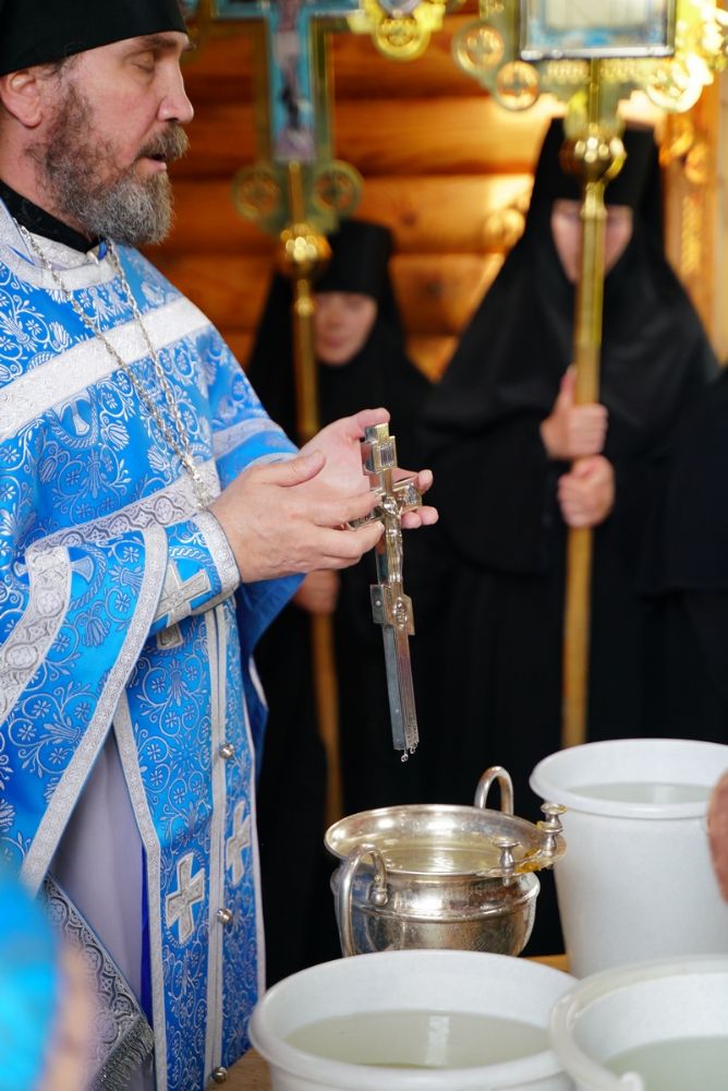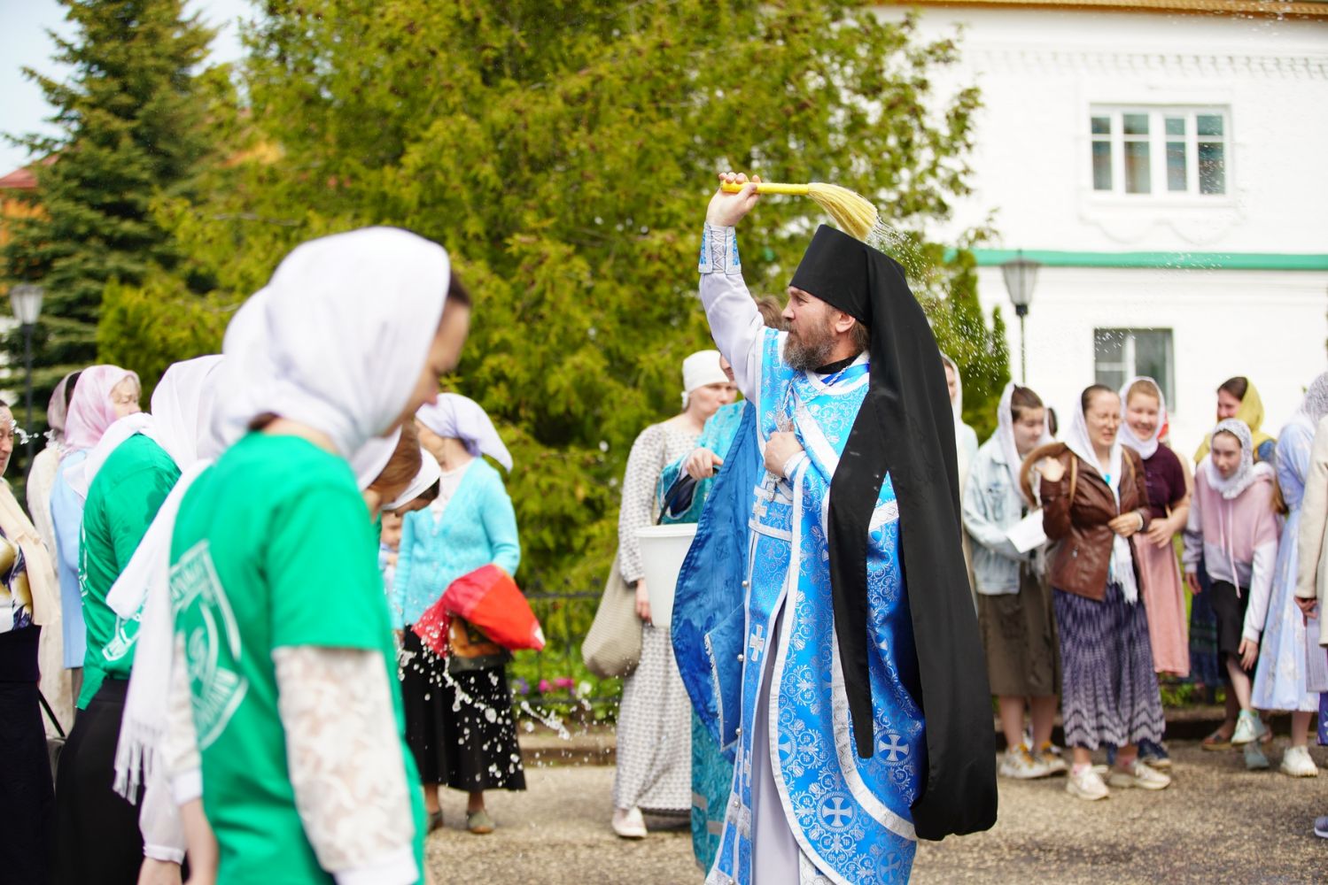 После Литургии верующие прошли крестным ходом к часовне святого Иоанна Предтечи на территории обители, где иеромонах Серафим совершил чин малого освящения воды и щедро окропил собравшихся.