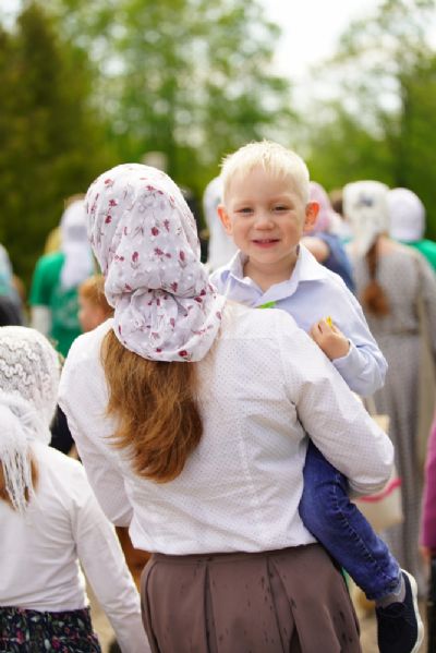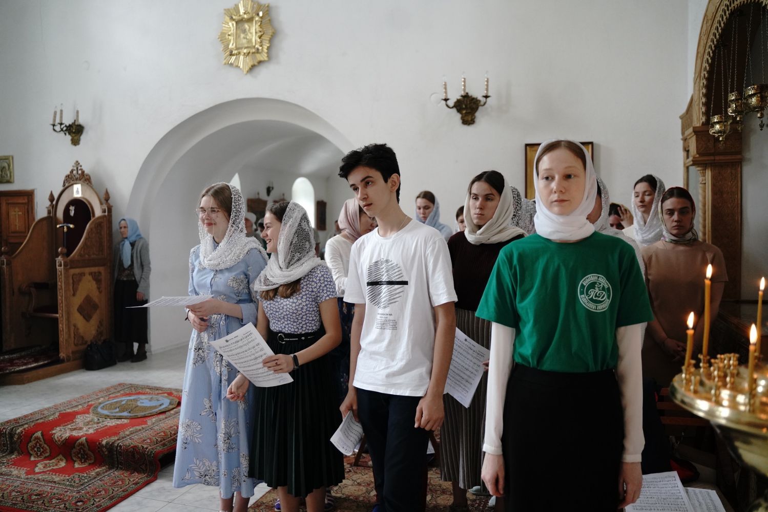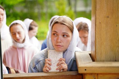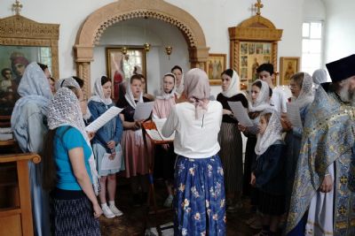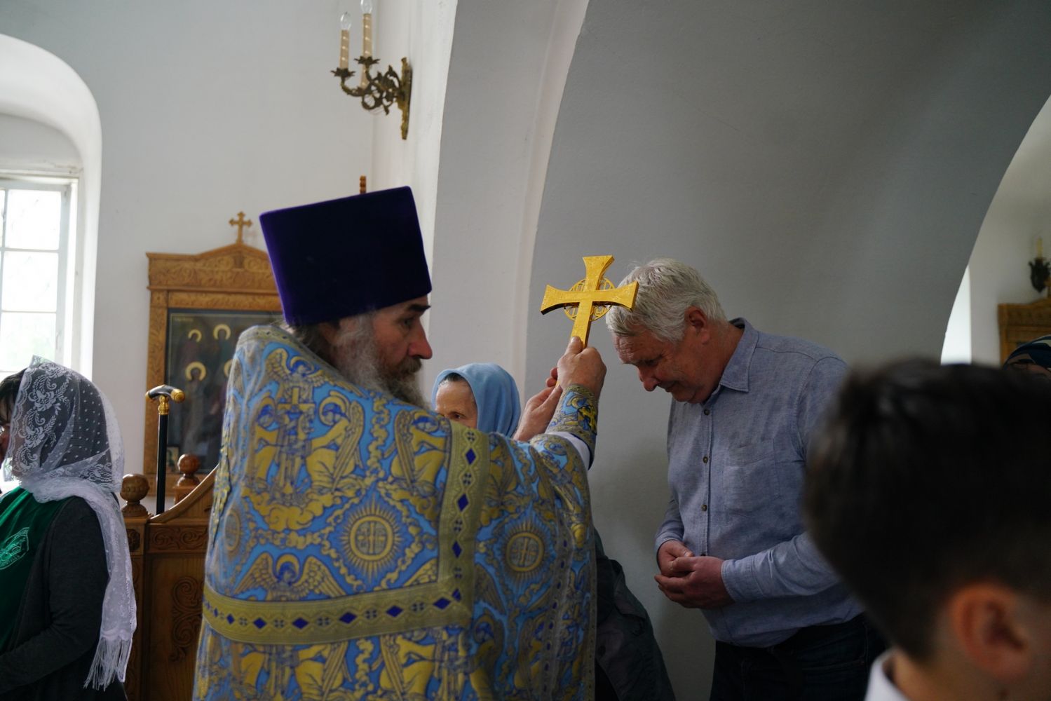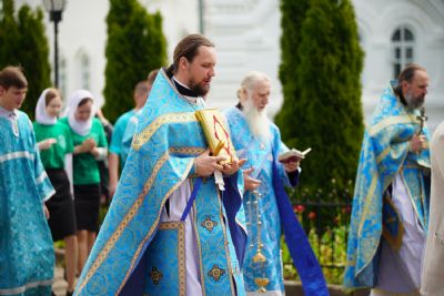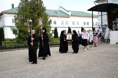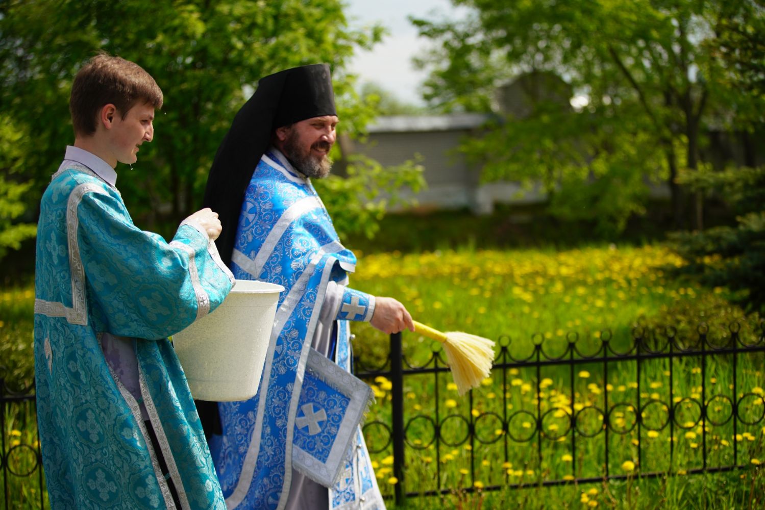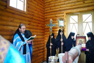 После Литургии верующие прошли крестным ходом к часовне святого Иоанна Предтечи на территории обители, где иеромонах Серафим совершил чин малого освящения воды и щедро окропил собравшихся.