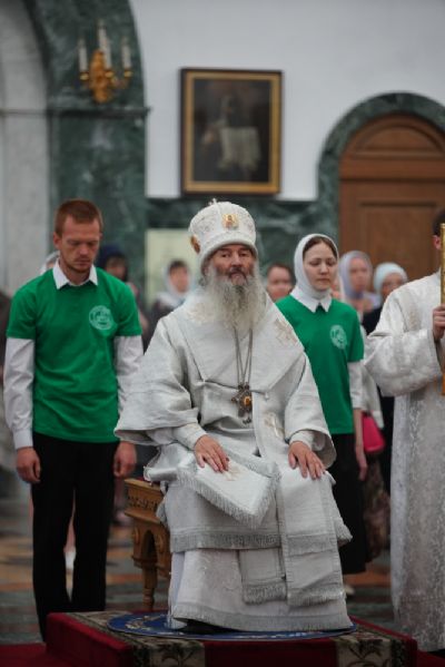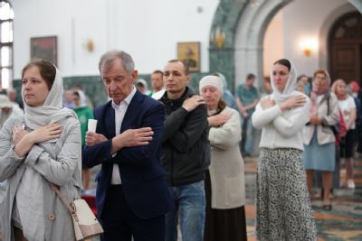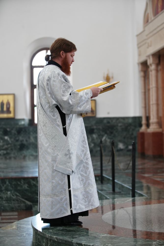 Владыке сослужили клирики собора иерей Евгений Самойлов, диаконы Андрей Дружинин и Артемий Бобоч, а также протодиакон Михаил Козловский. Песнопения исполнял хор «Благовест» под управлением регента Татьяны Черновой.