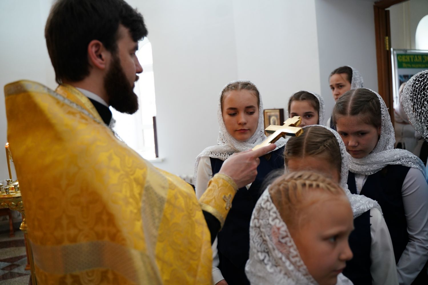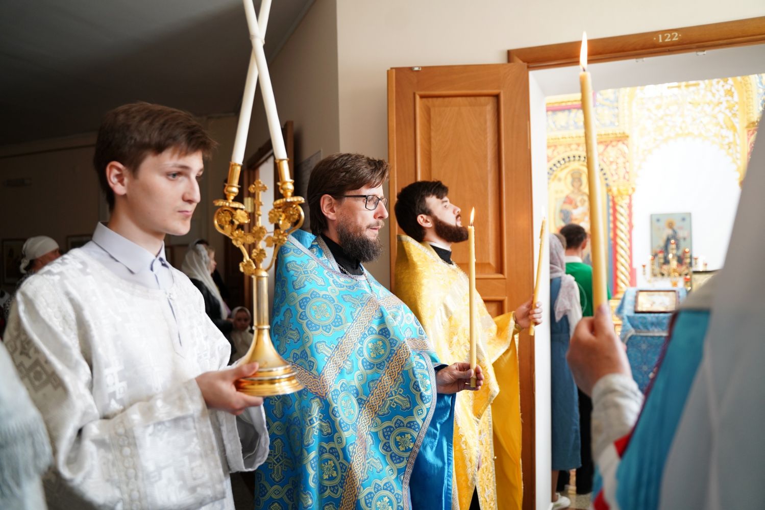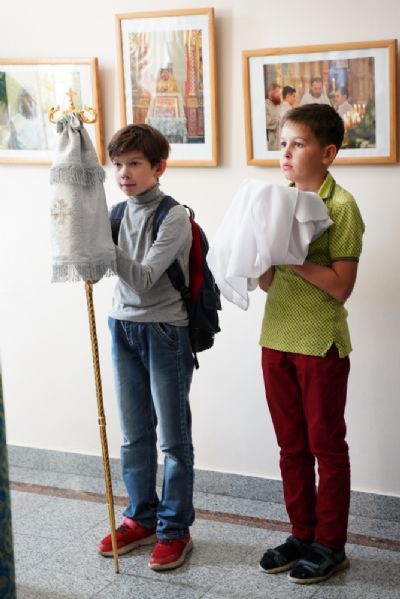 Конкурс предварился молебном с акафистом Иисусу Сладчайшему в домовом храме Православного центра. Его возглавил митрополит Йошкар-Олинский и Марийский Иоанн. Владыке сослужили настоятель храма мученицы Татианы протоиерей Евгений Сурков, клирик Благовещенского кафедрального собора, духовник младшего состава хора «Благовест» иерей Евгений Самойлов, руководитель молодежного отдела Йошкар-Олинской епархии иерей Никита Иванов, клирик Татианинского храма иерей Андрей Иванов и протодиакон Михаил Козловский. Песнопения антифонно исполняли все хоровые коллективы.