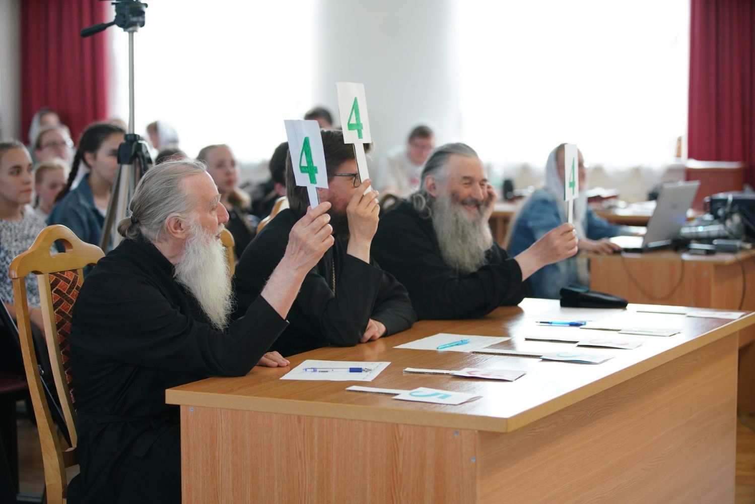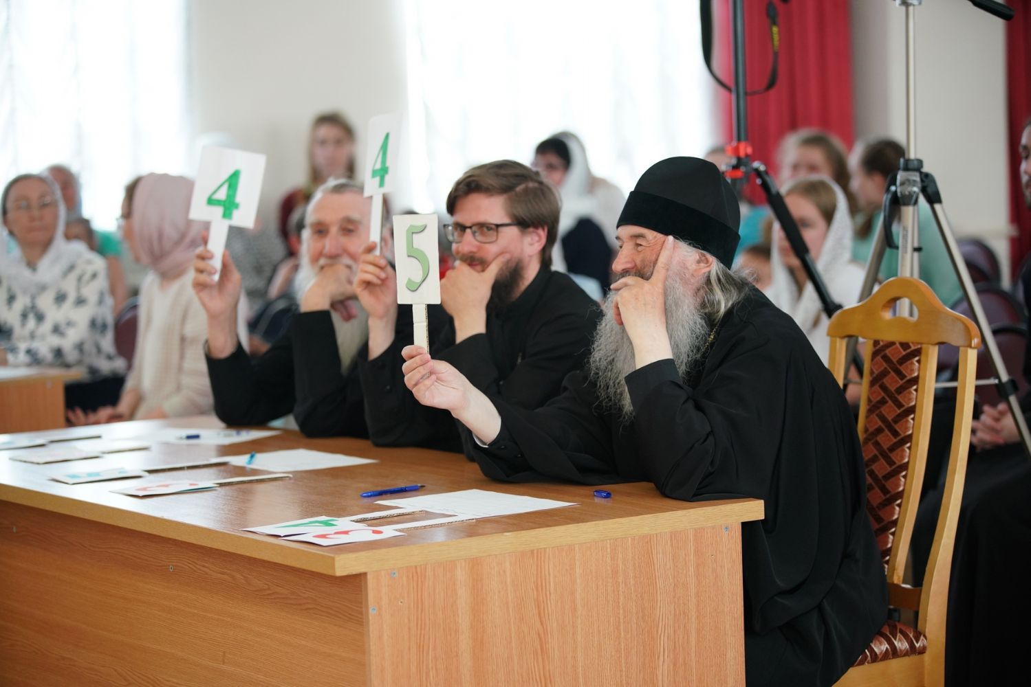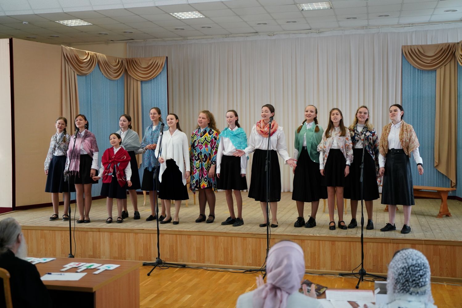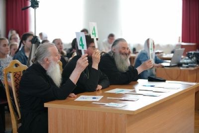Далее в актовом зале хоры представили конкурсную программу. Их выступления оценивало строгое жюри, в состав которого вошли митрополит Иоанн, иерей Евгений Самойлов и протодиакон Михаил Козловский. Учитывались не только слаженность пения и красота многоголосья, но и артистизм, элементы драматургии, сценические костюмы, игра на музыкальных инструментах… Вела конкурсную программу директор Центра гуманитарного образования ПГТУ Анна Артамонова.