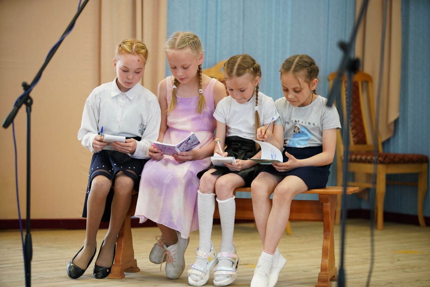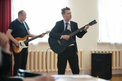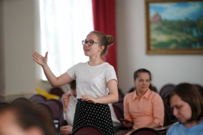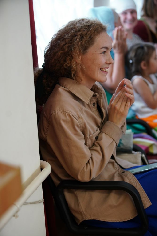 Чтобы хористы немного передохнули, в перерыве Анна Артамонова устроила конкурс загадок для самых маленьких участников команд и зрителей. Дети отгадывали загадки о музыкальных инструментах и получали конфеты в качестве призов.