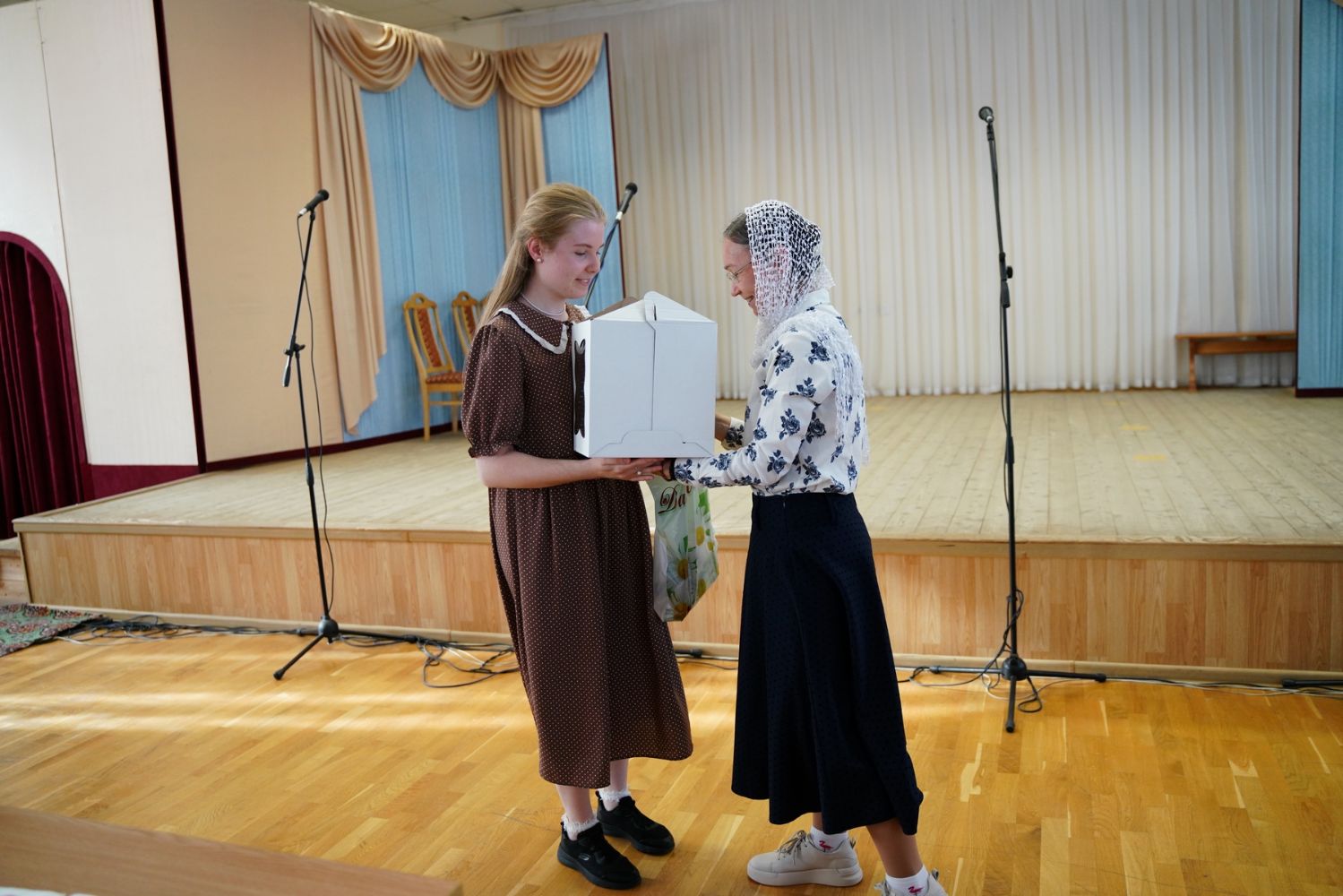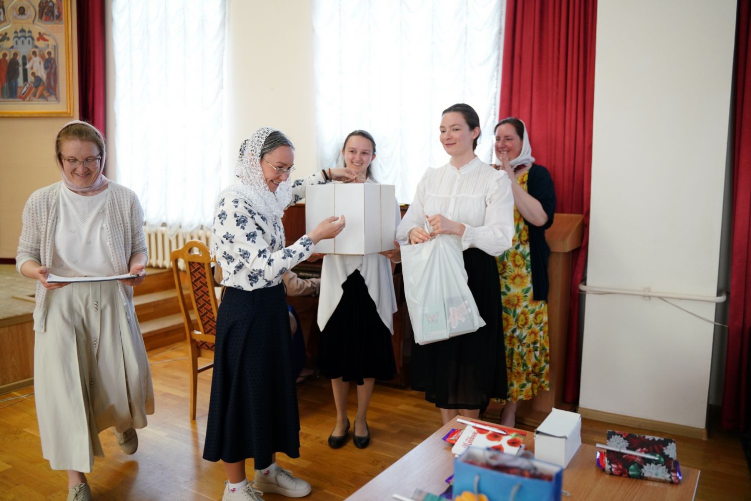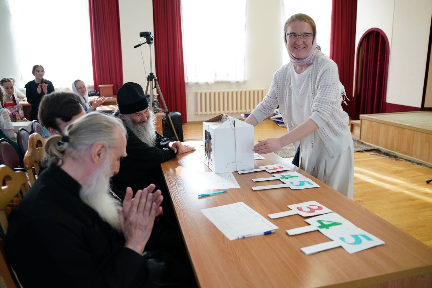 И вот, наконец, подведены итоги: победителем стала команда «Проснись и пой», второе место занял «Крутой овраг», а третье – «Славословие». Они получили в качестве призов большие красивые торты. Сладкие подарки достались и другим участникам конкурса.