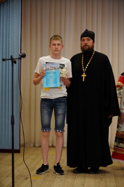 Также на сцене состоялось награждение школьников – победителей проходившей 13-27 мая литературной викторины ко Дню русского языка в Республике Марий Эл. Дипломы ребятам вручил руководитель отдела религиозного образования и катехизации Йошкар-Олинской епархии, благочинный Йошкар-Олинского церковного округа протоиерей Андрей Норкин.