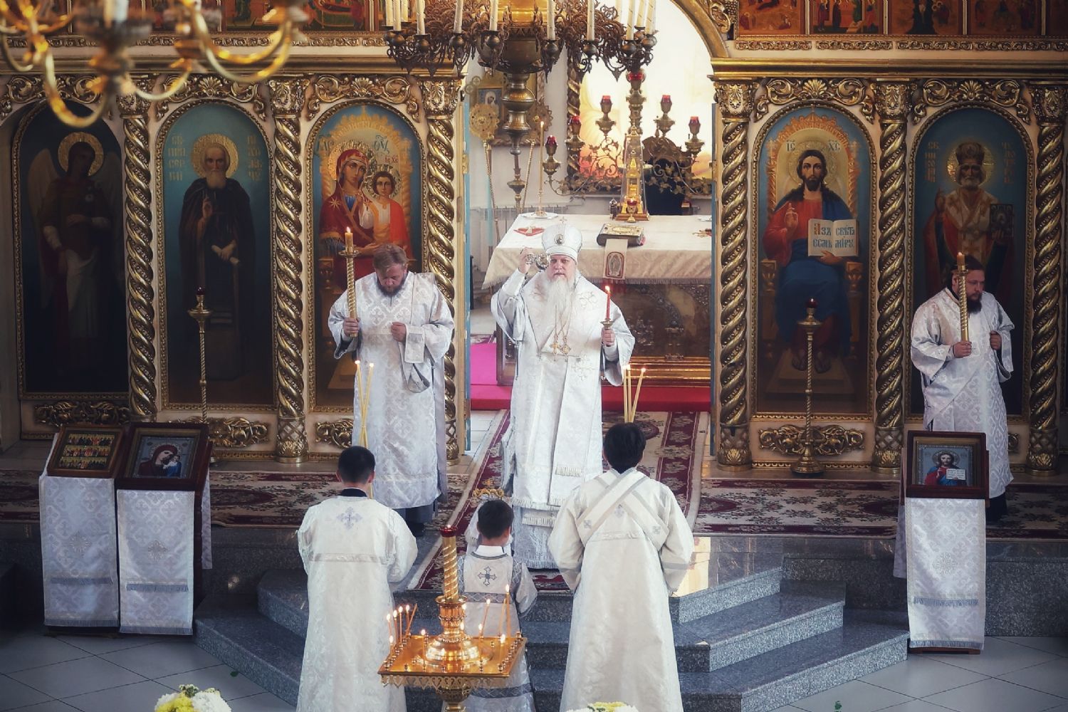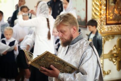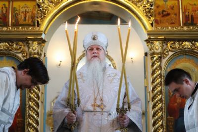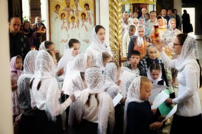 Его Преосвященству сослужили клирики кафедрального собора. Песнопения исполняли два хора – архиерейский и детско-юношеский.