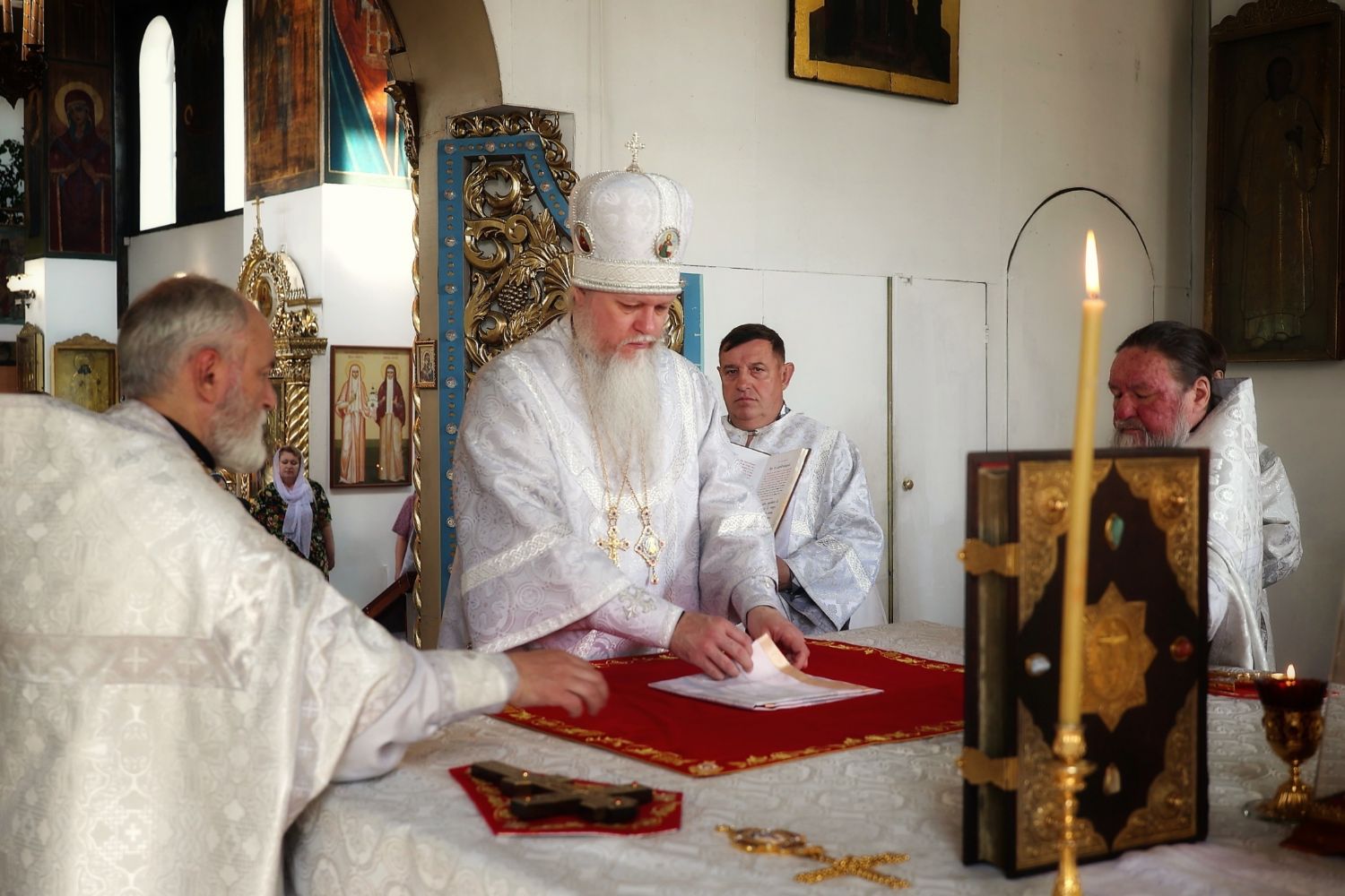 После Литургии владыка Феофан обратился к прихожанам с архипастырским словом, рассказав о житии преподобной Евфросинии, игумении Полоцкой, память которой Церковь празднует в этот день.