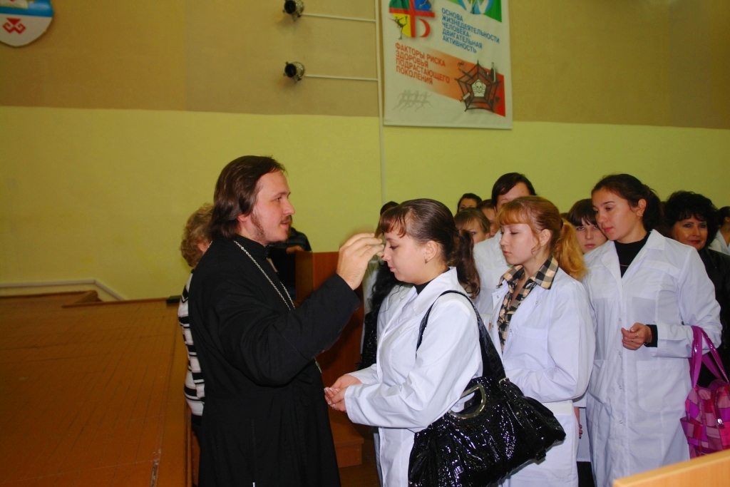 20 сентября в актовом зале Медицинского колледжа прошла встреча клирика Воскресенского собора иерея Леонида Вылекжанина со студентами 1 курса.