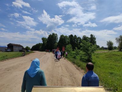 9 июня крестный ход с Владимирской иконой Божией Матери проделал путь от с. Усола до села Кузнецово Горномарийского района. Здесь Пречистую Богородицу вышли встречать прихожане храма святых апостолов Петра и Павла с. Кузнецово во главе с секретарем Йошкар-Олинской епархии иеромонахом Серафимом (Пасанаевым) и настоятелем Петропавловского храма иереем Алексием Семеновым.