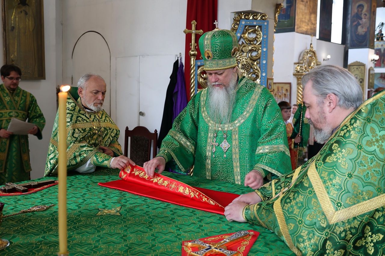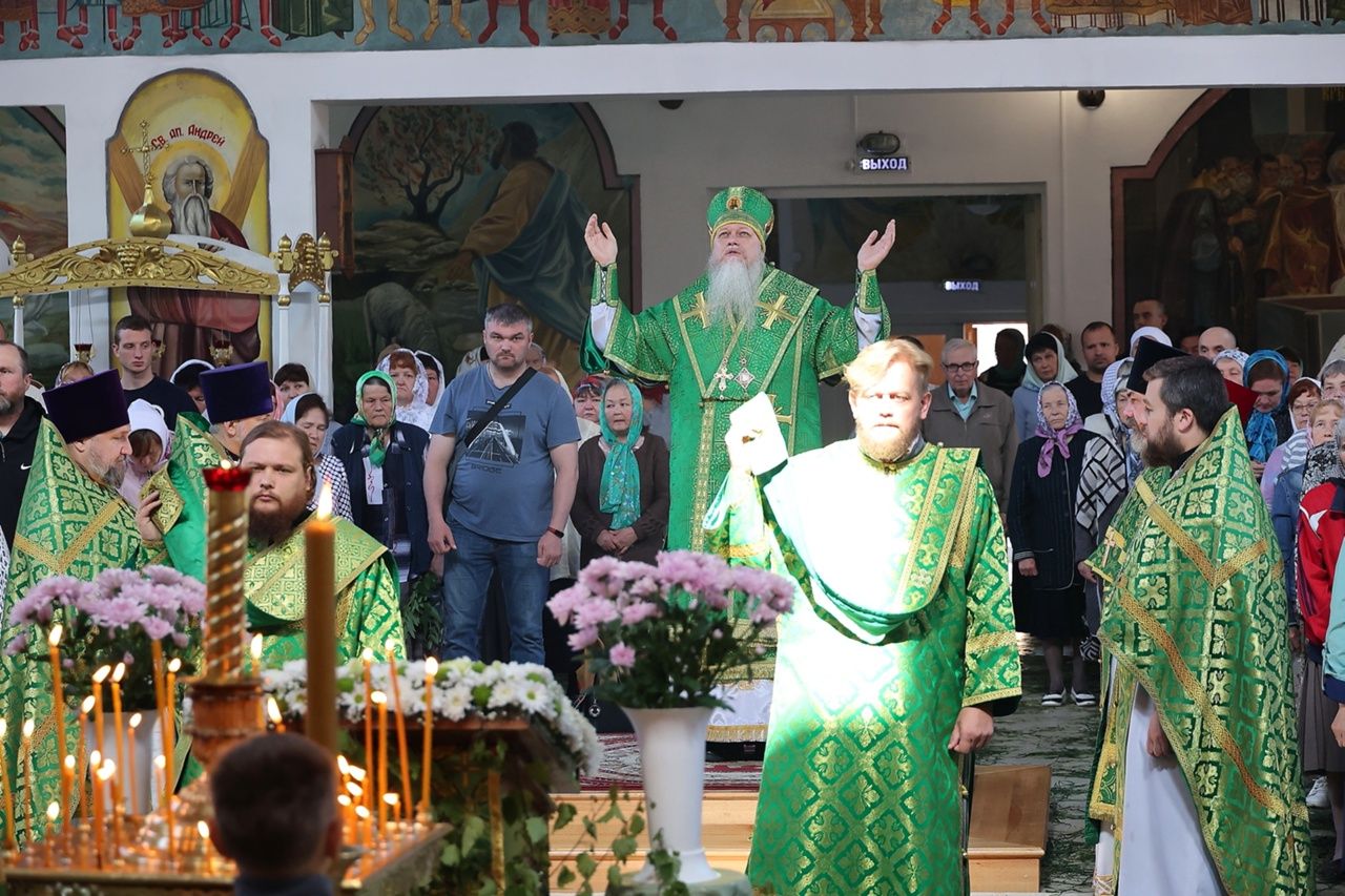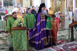По окончании Литургии глава епархии совершил великую вечерню праздника Пятидесятницы с чтением коленопреклонных молитв. Затем владыка обратился к верующим с архипастырским словом: