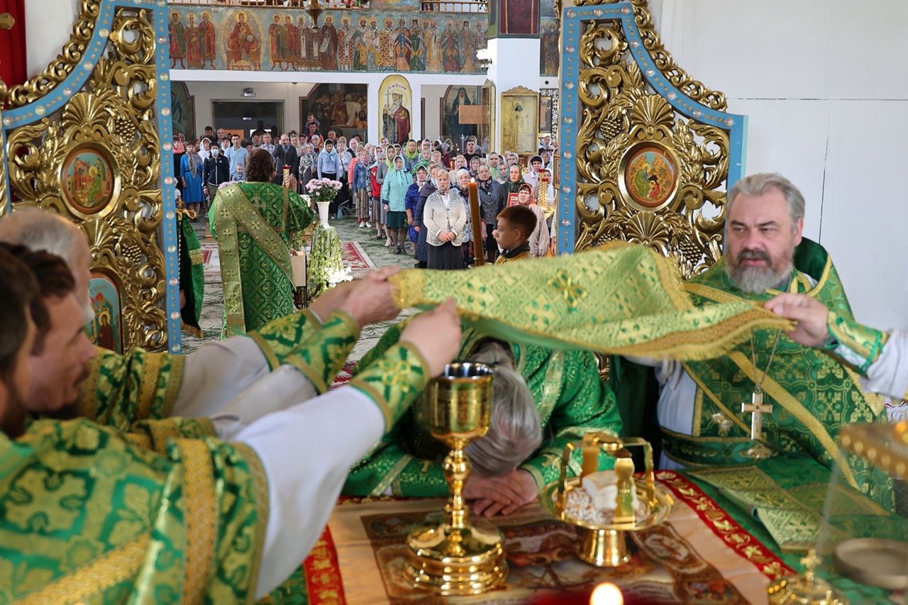12 июня, в праздник Пресвятой Троицы (Пятидесятницы), епископ Волжский и Сернурский Феофан совершил Божественную литургию, а накануне вечером всенощное бдение в Никольском кафедральном соборе г. Волжска. Владыке сослужили клирики собора.