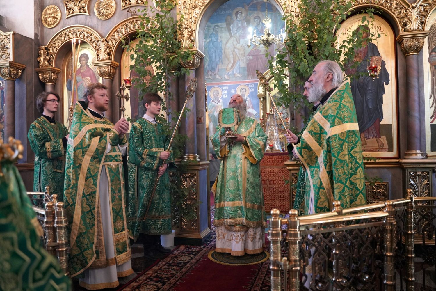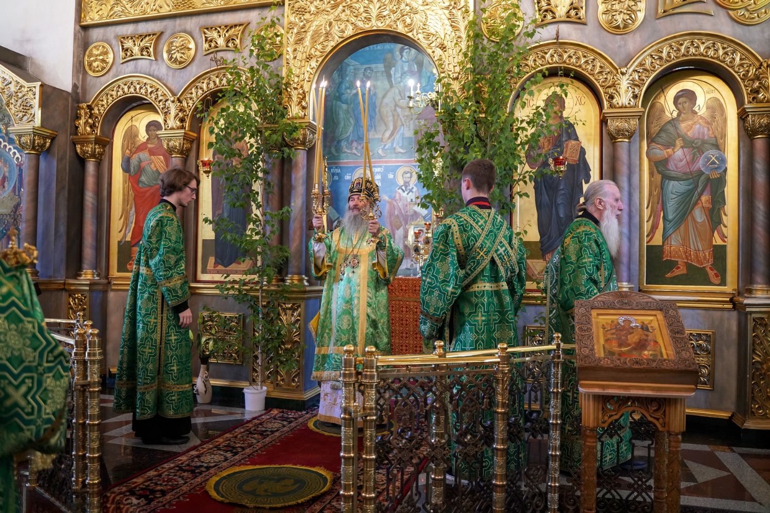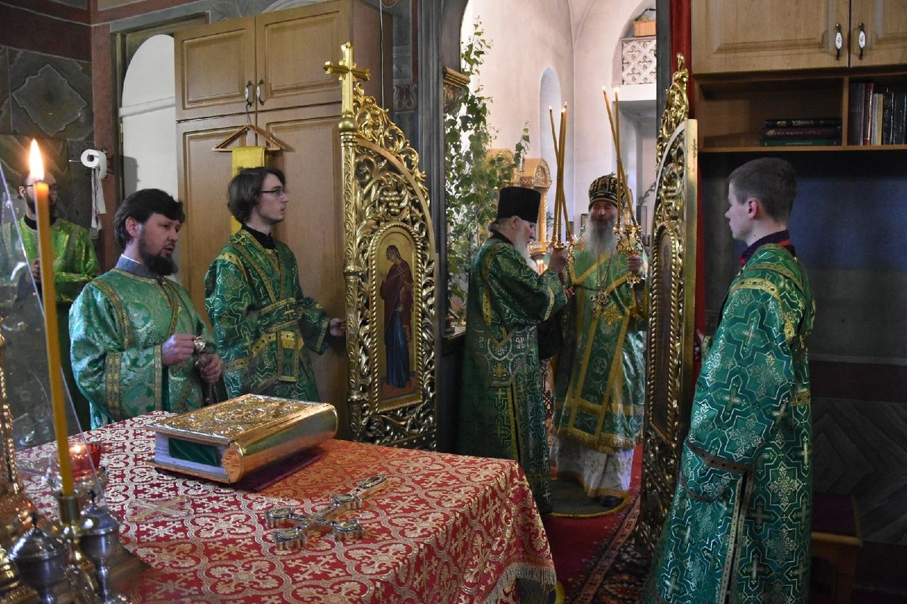 Его Высокопреосвященству сослужили настоятель храма протоиерей Сергий Филонов, клирики храма и протодиакон Михаил Козловский. Песнопения исполнял хор храма.