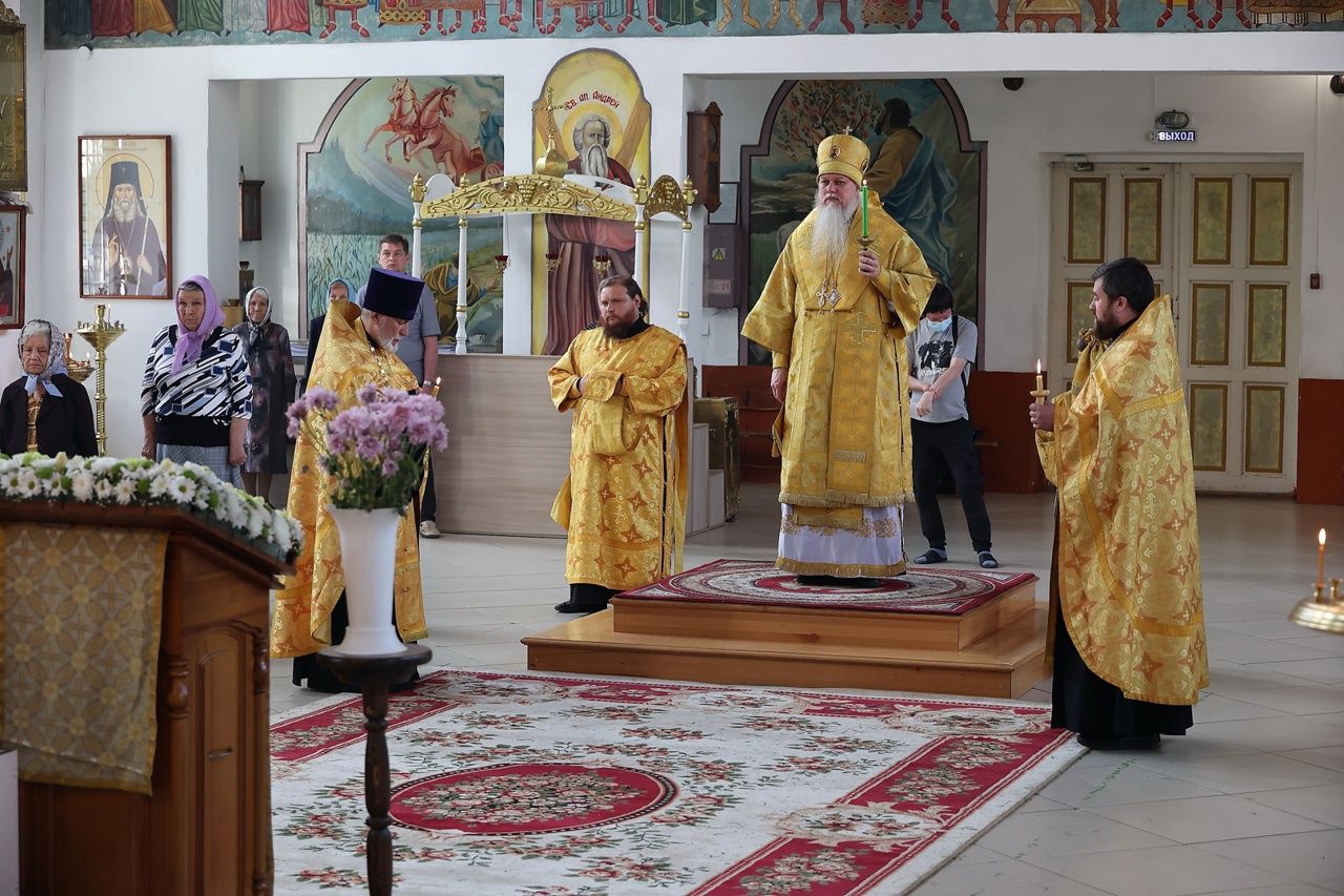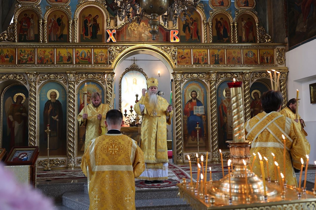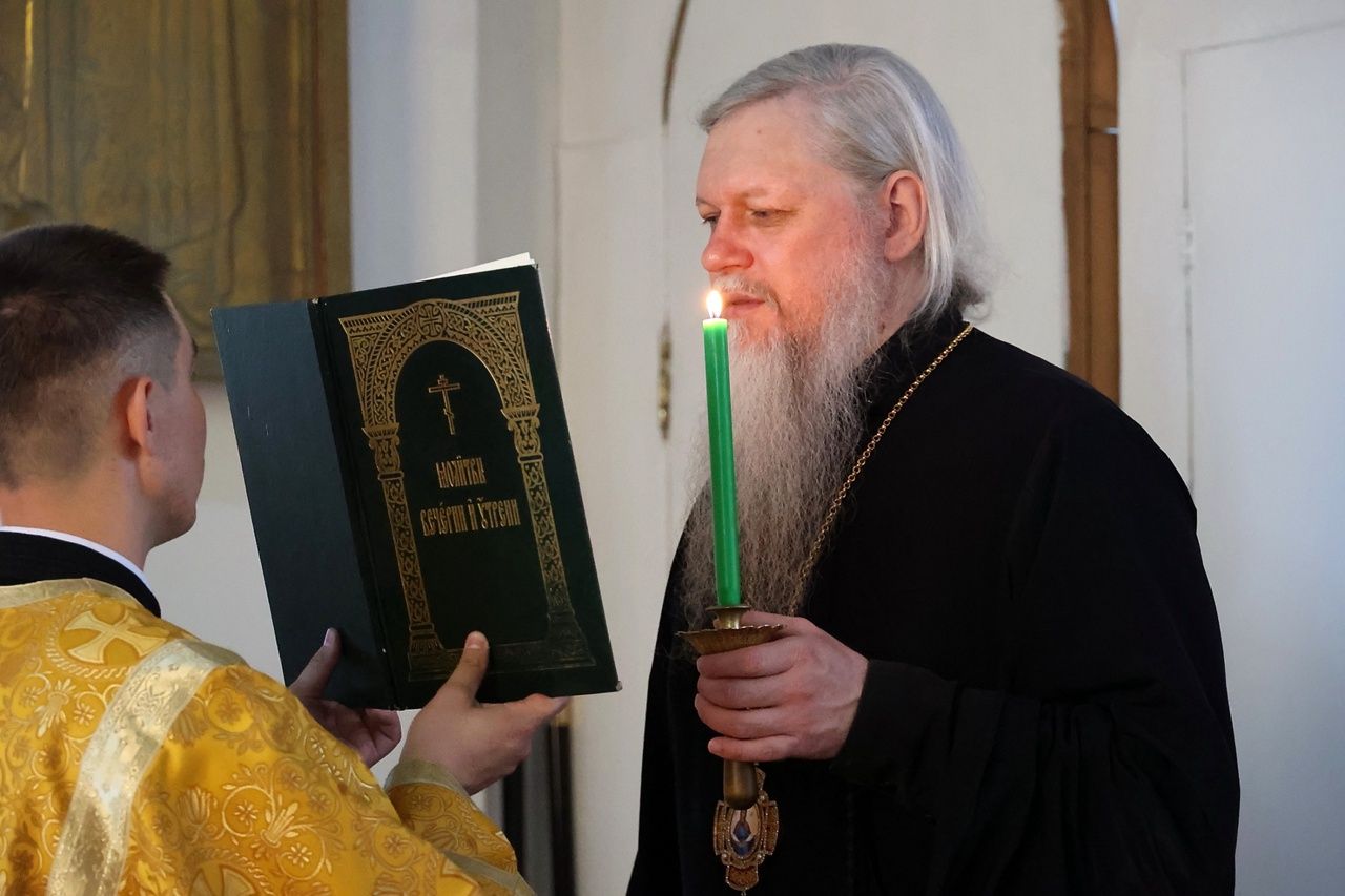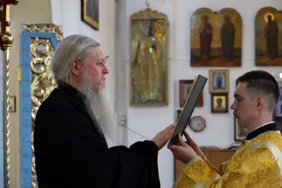 Владыке сослужили секретарь епархиального управления иерей Иоанн Лапшинский и клирики Никольского собора иерей Андрей Легостаев, диаконы Иоанн Захаров и Димитрий Карпетченко. Песнопения исполнял архиерейский хор.