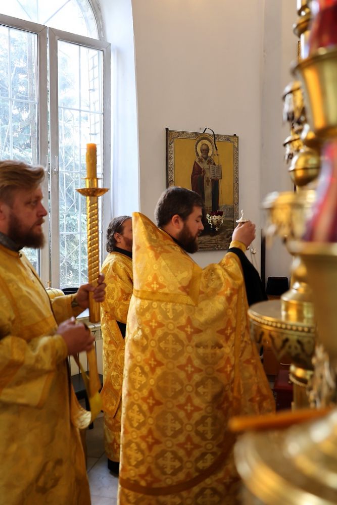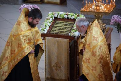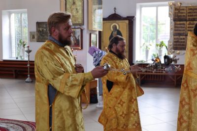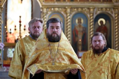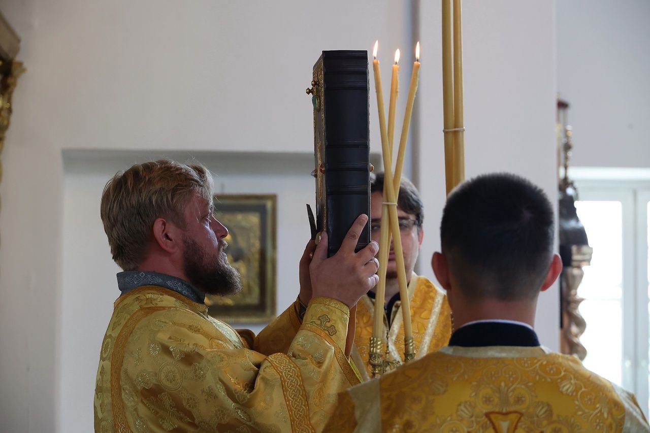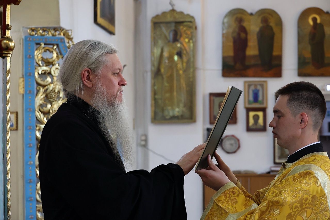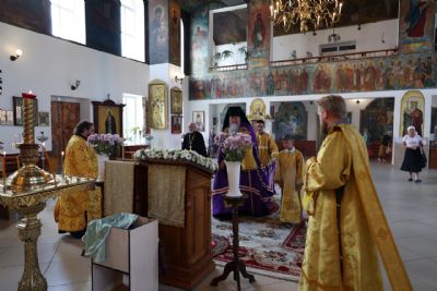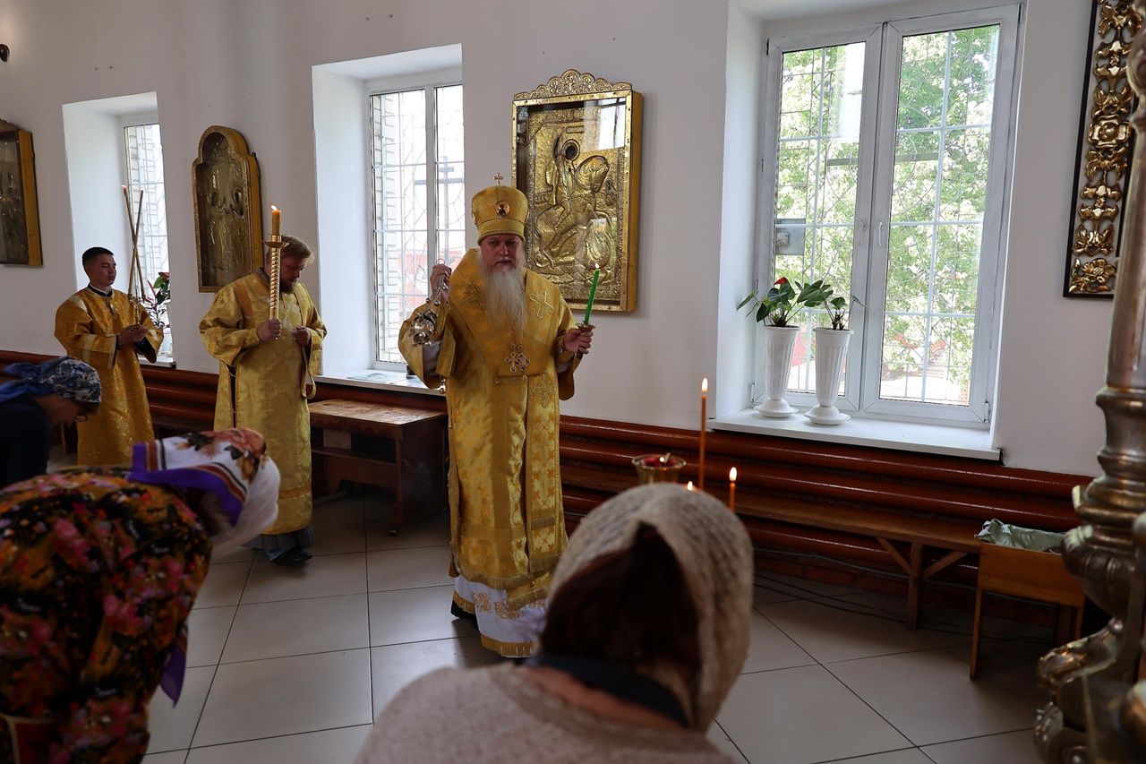 Владыке сослужили секретарь епархиального управления иерей Иоанн Лапшинский и клирики Никольского собора иерей Андрей Легостаев, диаконы Иоанн Захаров и Димитрий Карпетченко. Песнопения исполнял архиерейский хор.