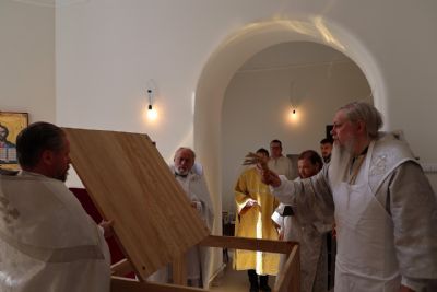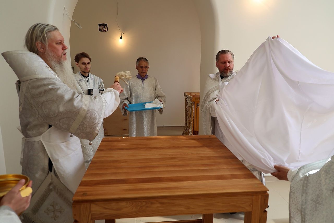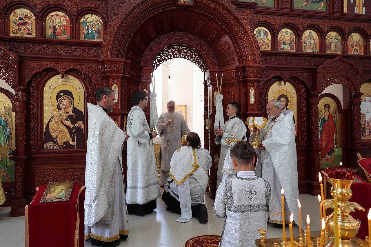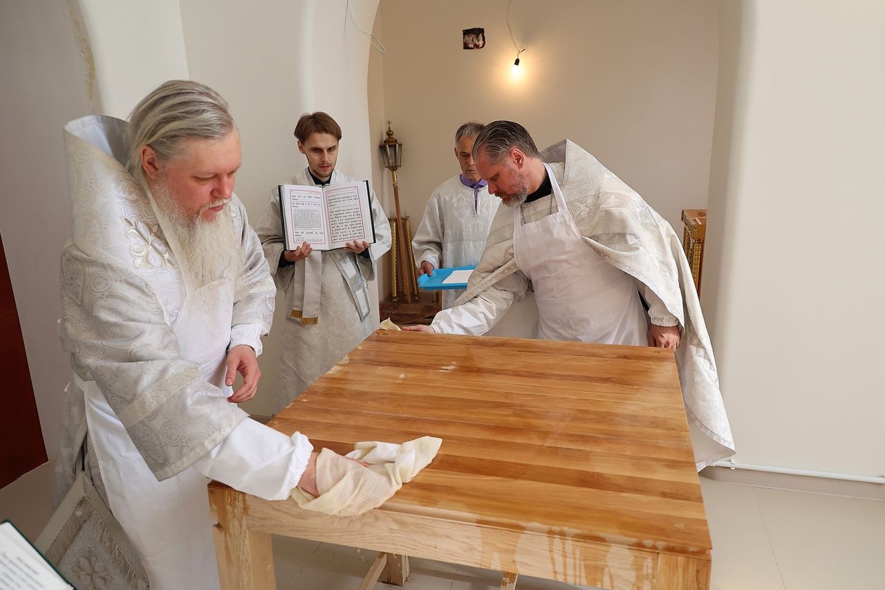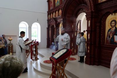 По милости Божией сегодня в этом храме мы освятили престол в честь Новомучеников и исповедников Церкви Русской, которые прославлены Священным Синодом как пострадавшие от рук безбожников после 1917 года в нашей стране. Эти святые также входят в Собор Всех Святых и сегодня также их память. Надеемся, что этот храм всегда будет наполнен людьми, которые будут всем сердцем обращаться к святым новомученикам и исповедникам Церкви Русской, а также святым Царственным страстотерпцам, чтобы, надеясь на их молитвы, продолжать свой жизненный путь в любви к Богу и к ближним, как заповедовал нам Господь наш Иисус Христос».