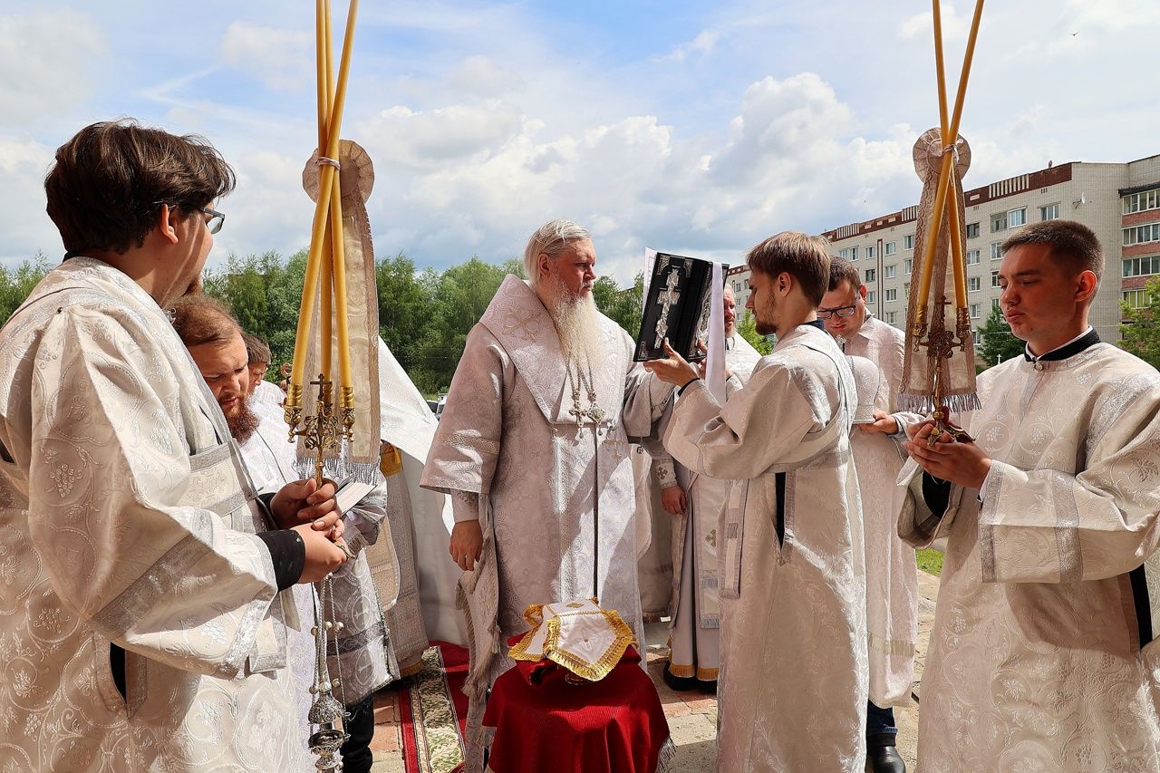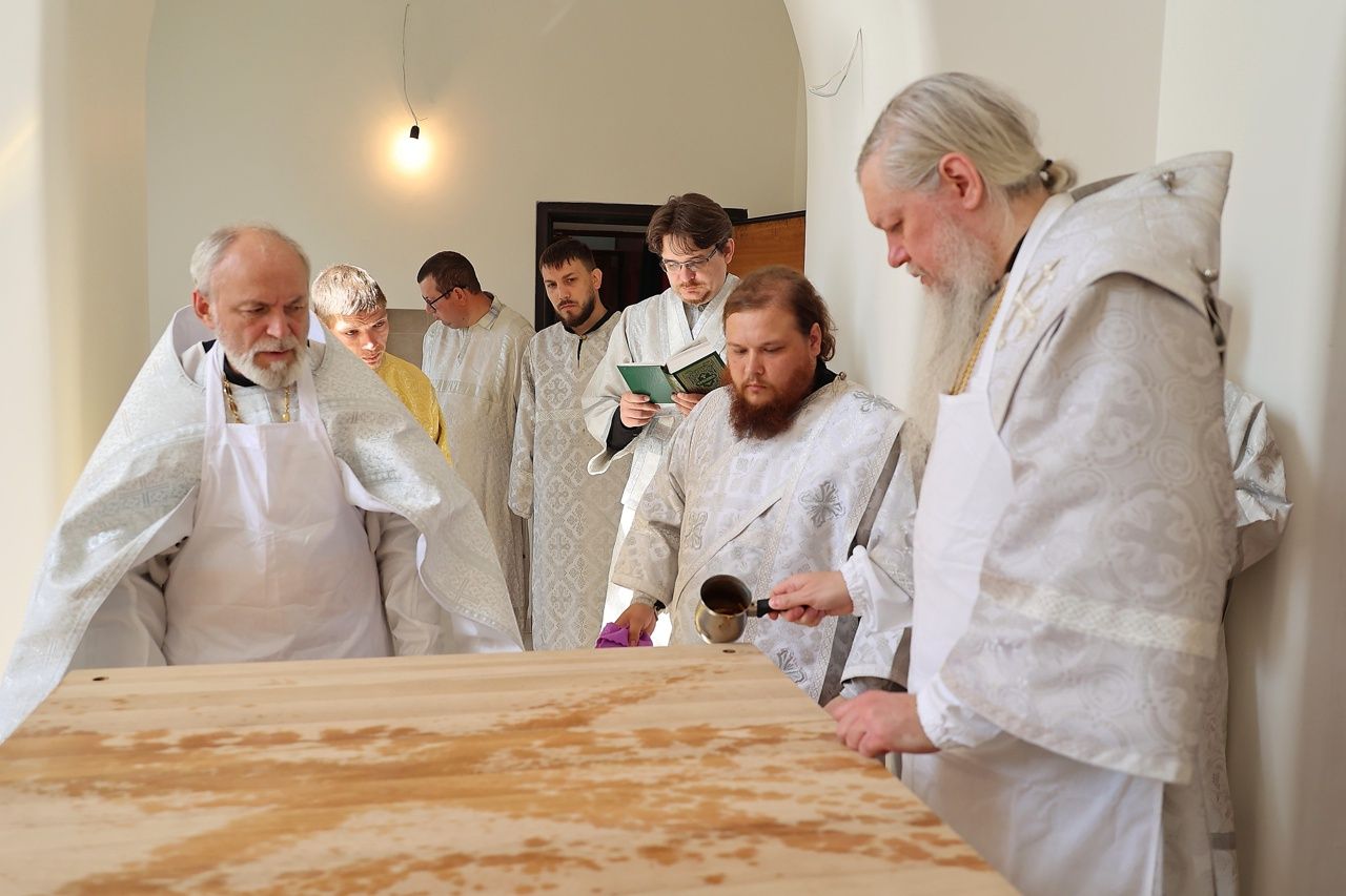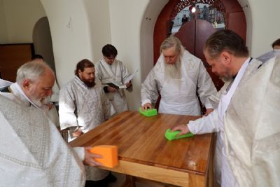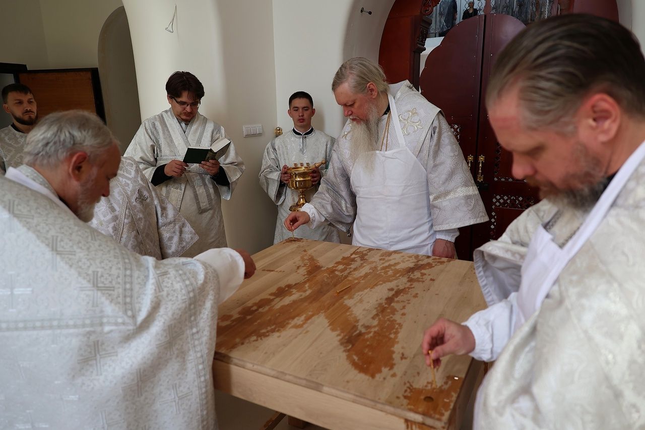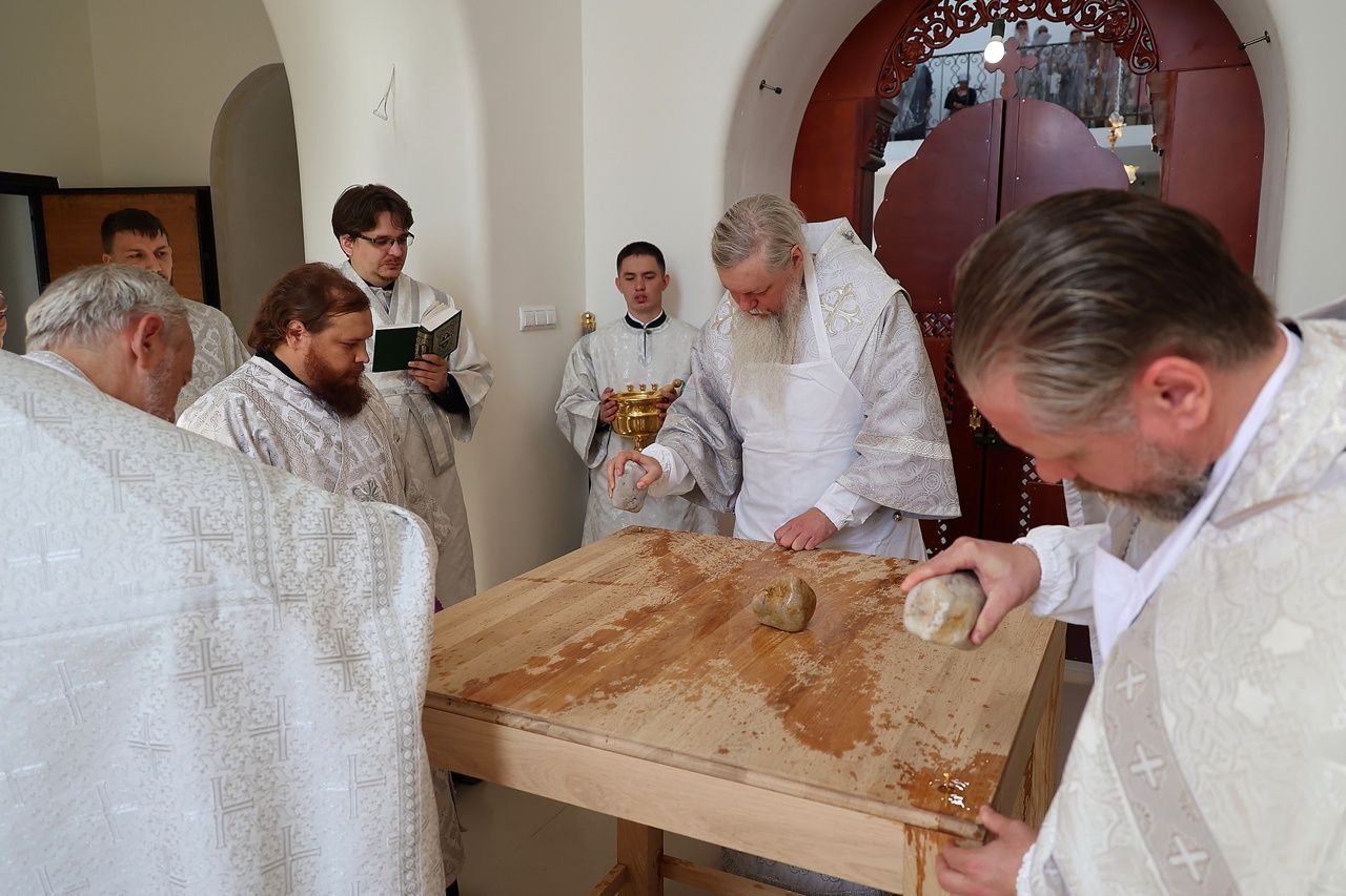 По милости Божией сегодня в этом храме мы освятили престол в честь Новомучеников и исповедников Церкви Русской, которые прославлены Священным Синодом как пострадавшие от рук безбожников после 1917 года в нашей стране. Эти святые также входят в Собор Всех Святых и сегодня также их память. Надеемся, что этот храм всегда будет наполнен людьми, которые будут всем сердцем обращаться к святым новомученикам и исповедникам Церкви Русской, а также святым Царственным страстотерпцам, чтобы, надеясь на их молитвы, продолжать свой жизненный путь в любви к Богу и к ближним, как заповедовал нам Господь наш Иисус Христос».