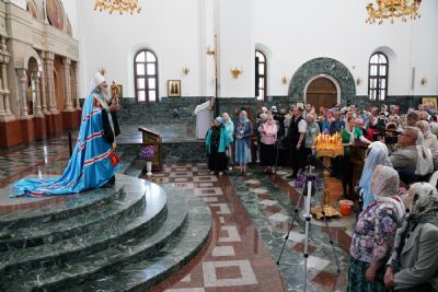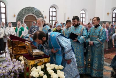 В Благовещенском кафедральном соборе святыню встретил митрополит Йошкар-Олинский и Марийский Иоанн. Он возглавил молебен Пресвятой Богородице. Владыке сослужили клирики кафедрального собора, руководитель молодежного отдела Йошкар-Олинской епархии иерей Никита Иванов и протодиакон Михаил Козловский.
